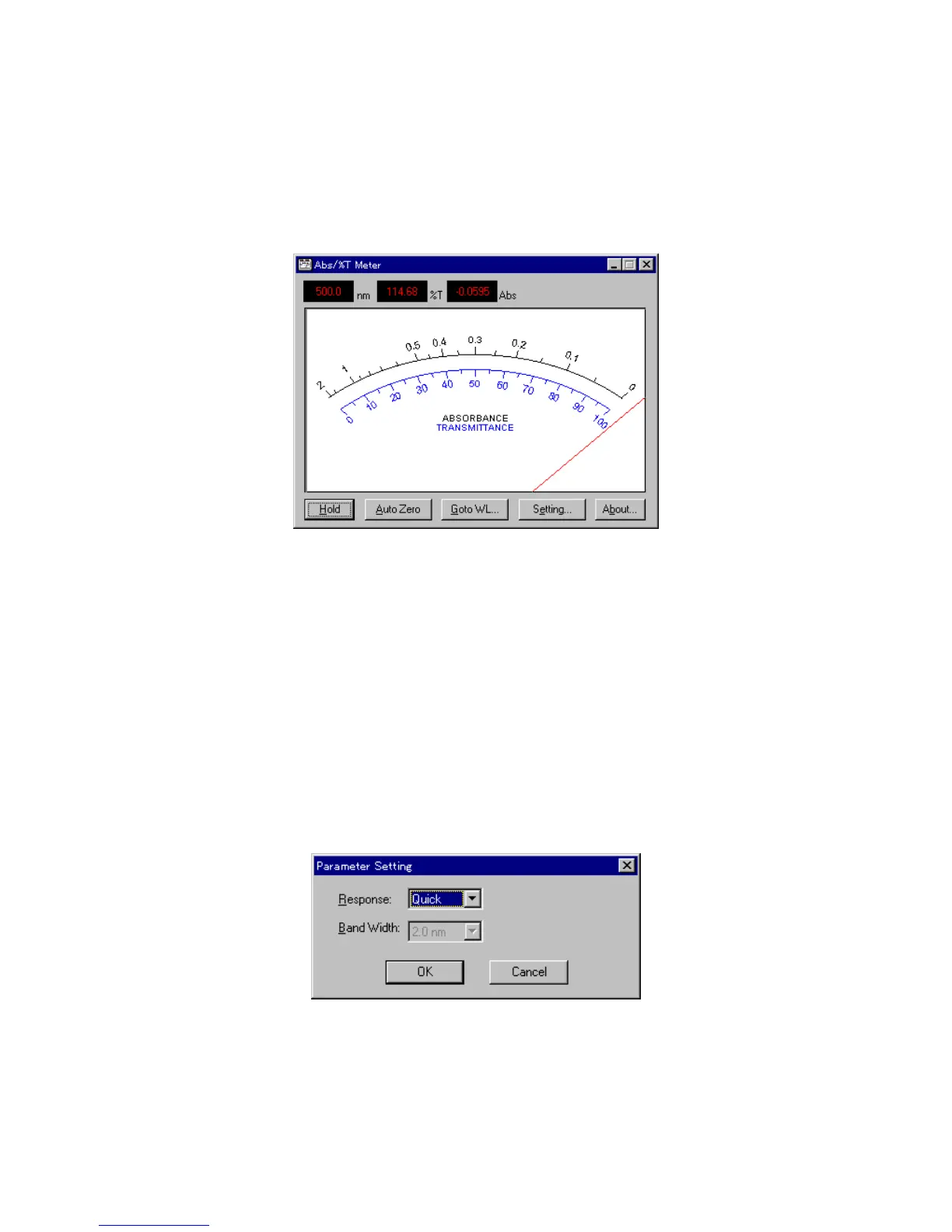 In the [S pectra M anager] w indow , double-click [A bs/% T M eter]. The program starts and the w indow below