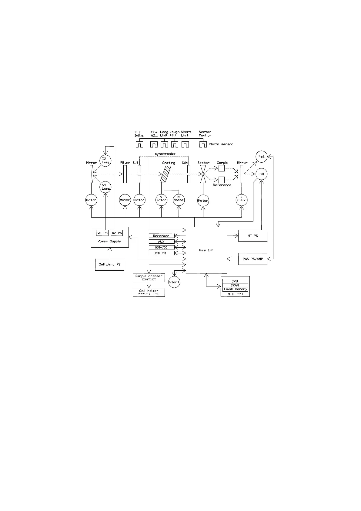 Actions such as light source exchange, wavelength drive, slit drive, filter drive, etc. are controlled