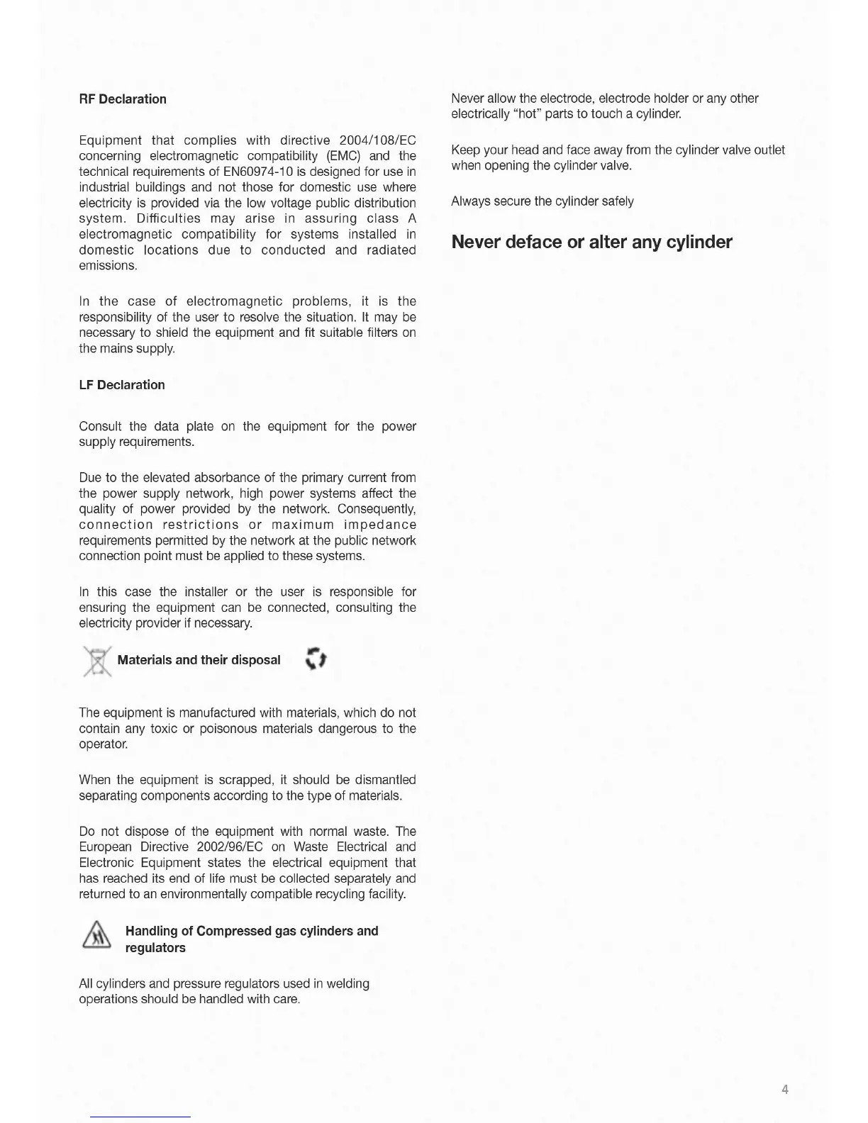 Jasic Arc 200 - Health, safety and environmental considerations