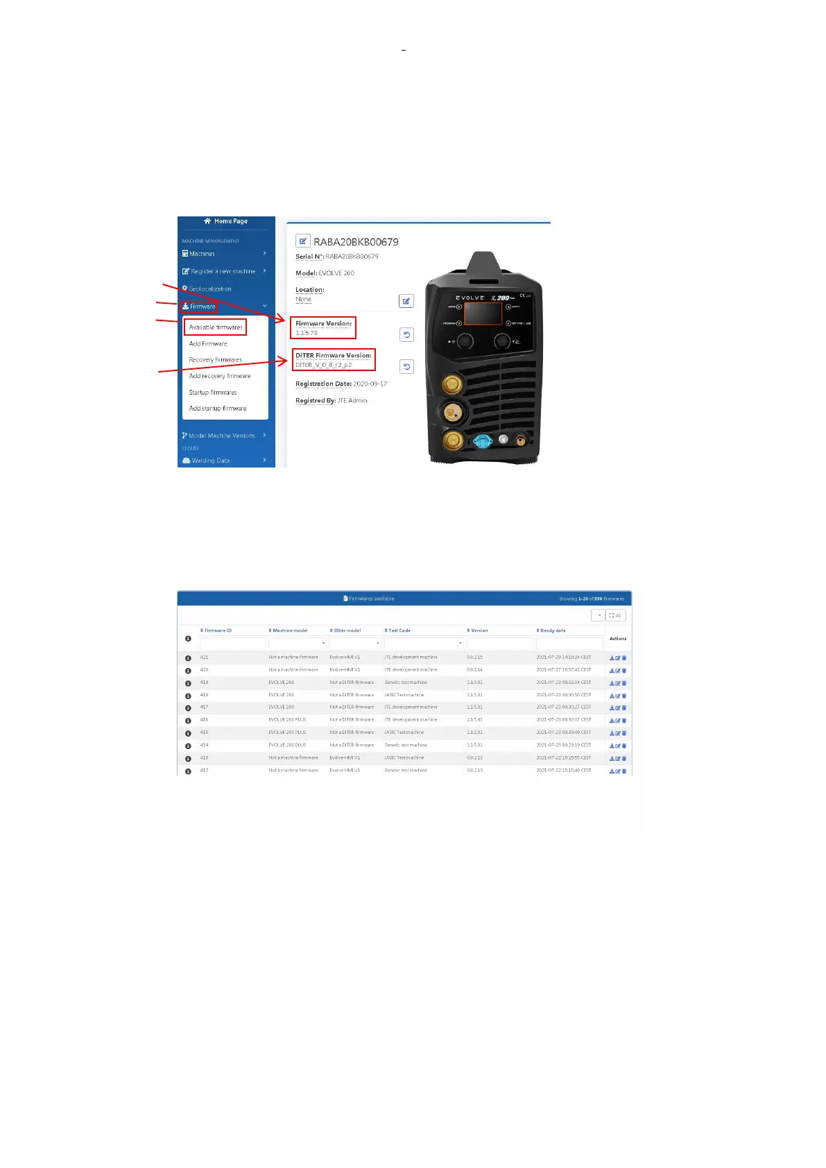 In the picture shown above,Firmware contains Available firmwares,Add Firmware,Recovery firmwares,