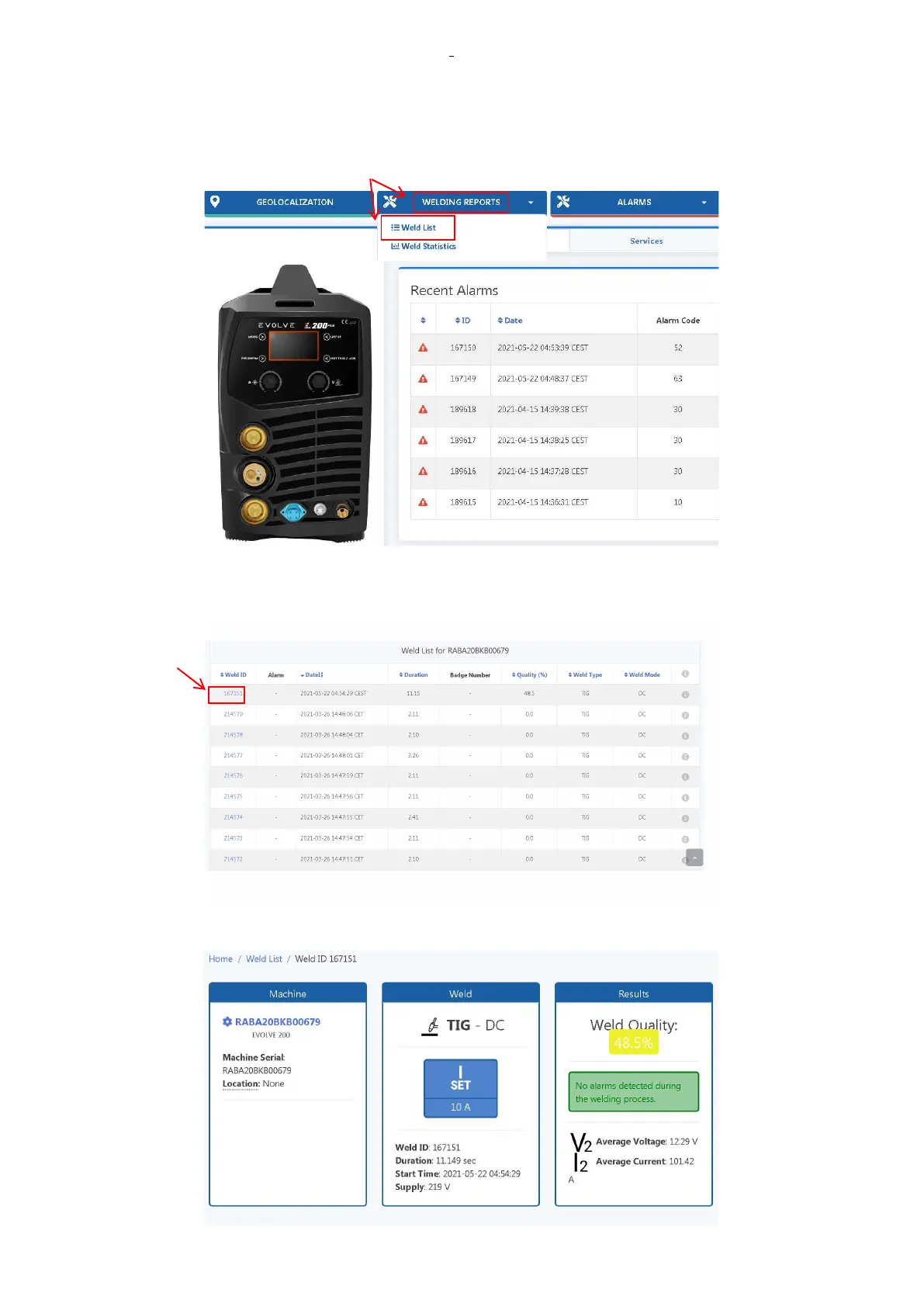 The Weld List of the machine(RABA20BKB00679) is shown in the following picture,click on anyone Weld
