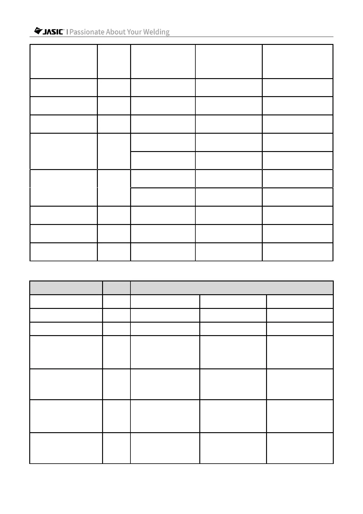 MIG160PFC/MIG200PFC/MIG250PFC Parameters