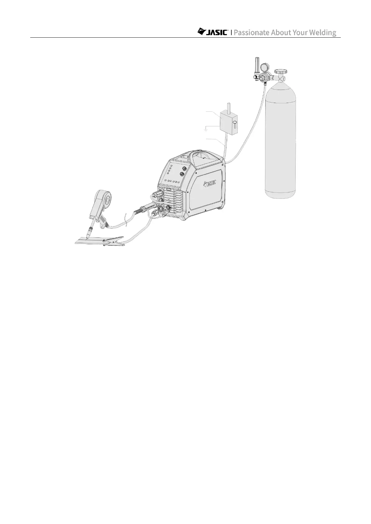 6) Connect one end of the gas hose to the gas valve inlet on the rear panel of the welder, and