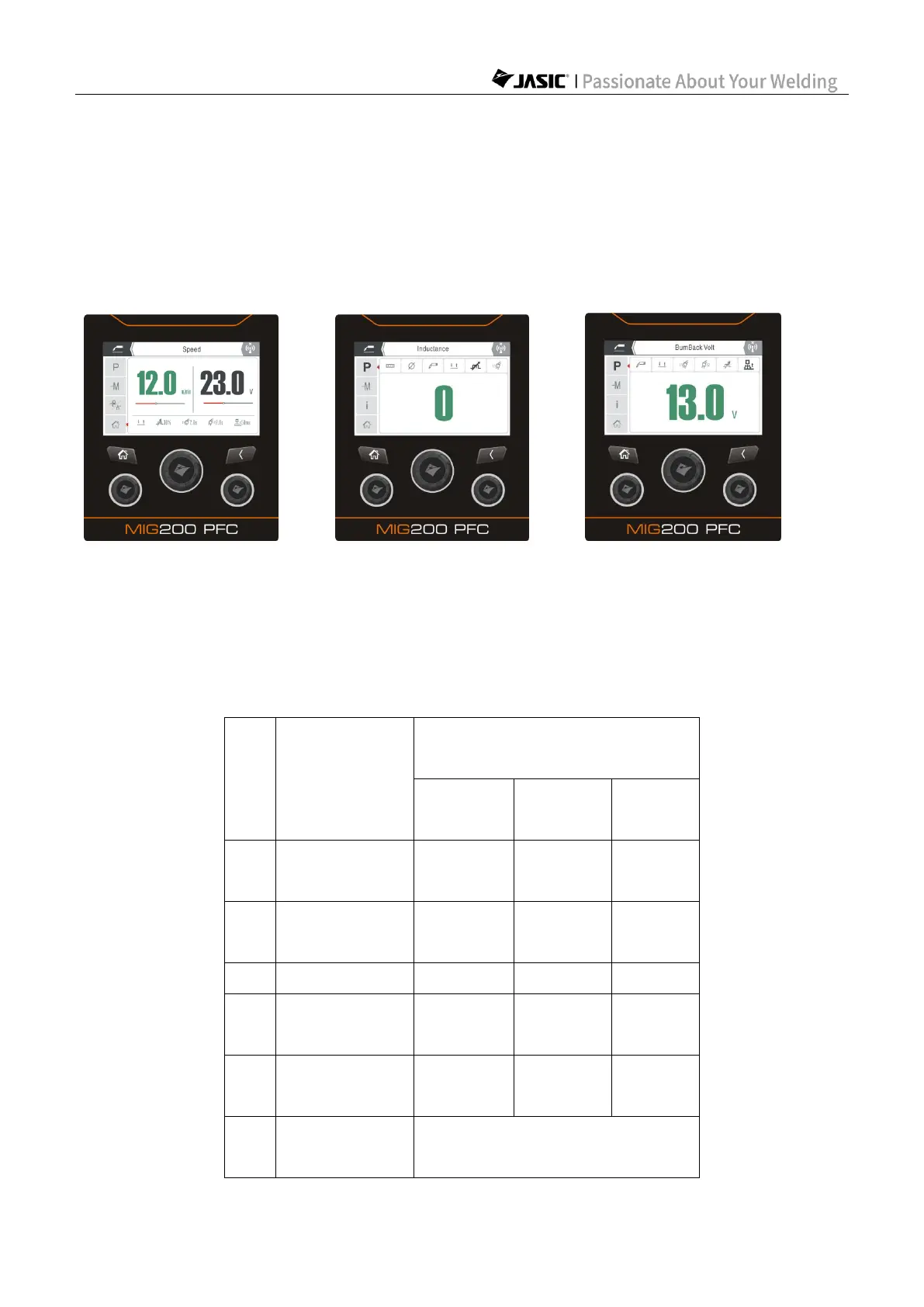 1) Use the "Master Encoder" or "Parameter Adjustment Knob A" to set the "Wire Feed