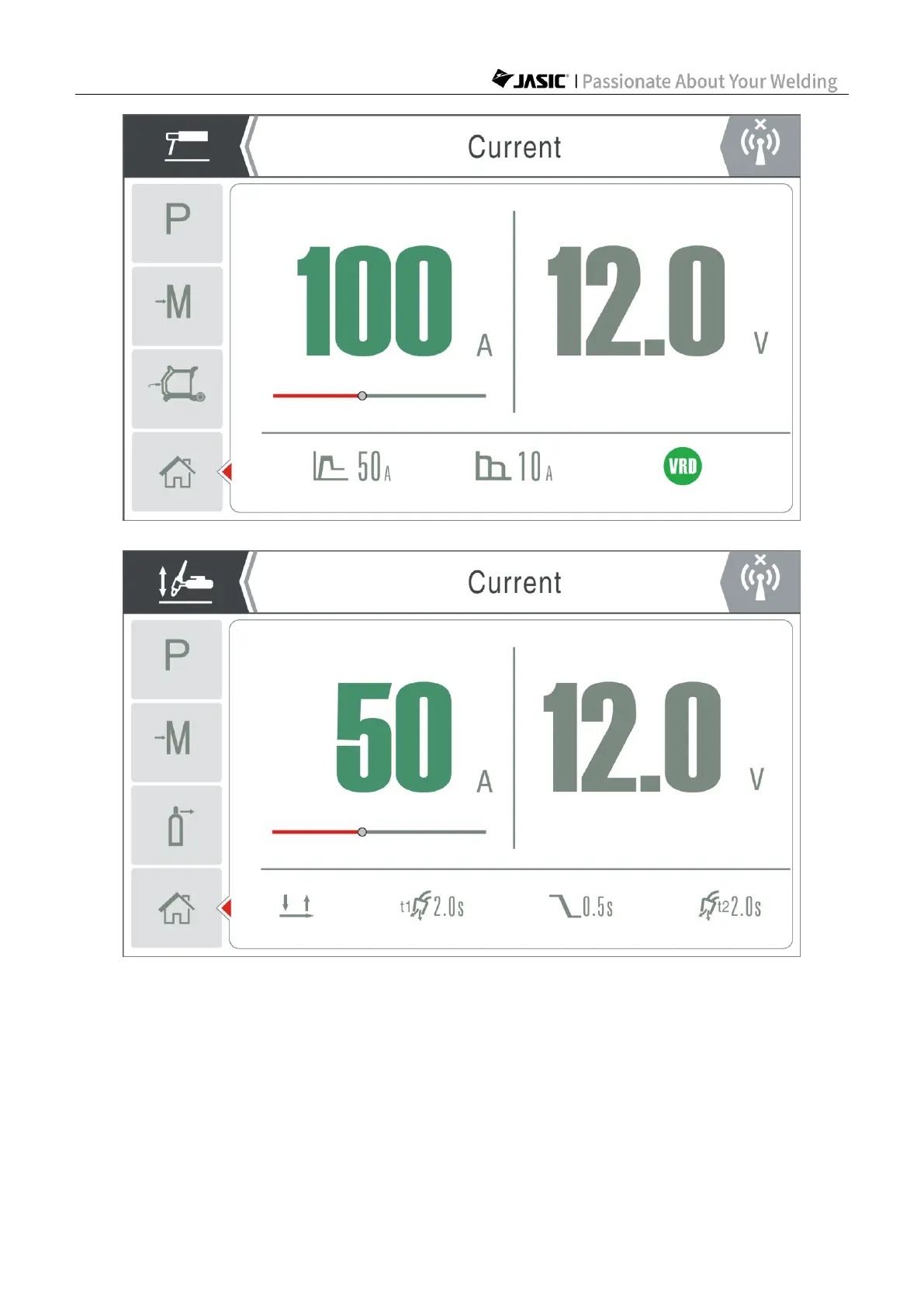 it displays the actual current and voltage values. During welding, the user can press the