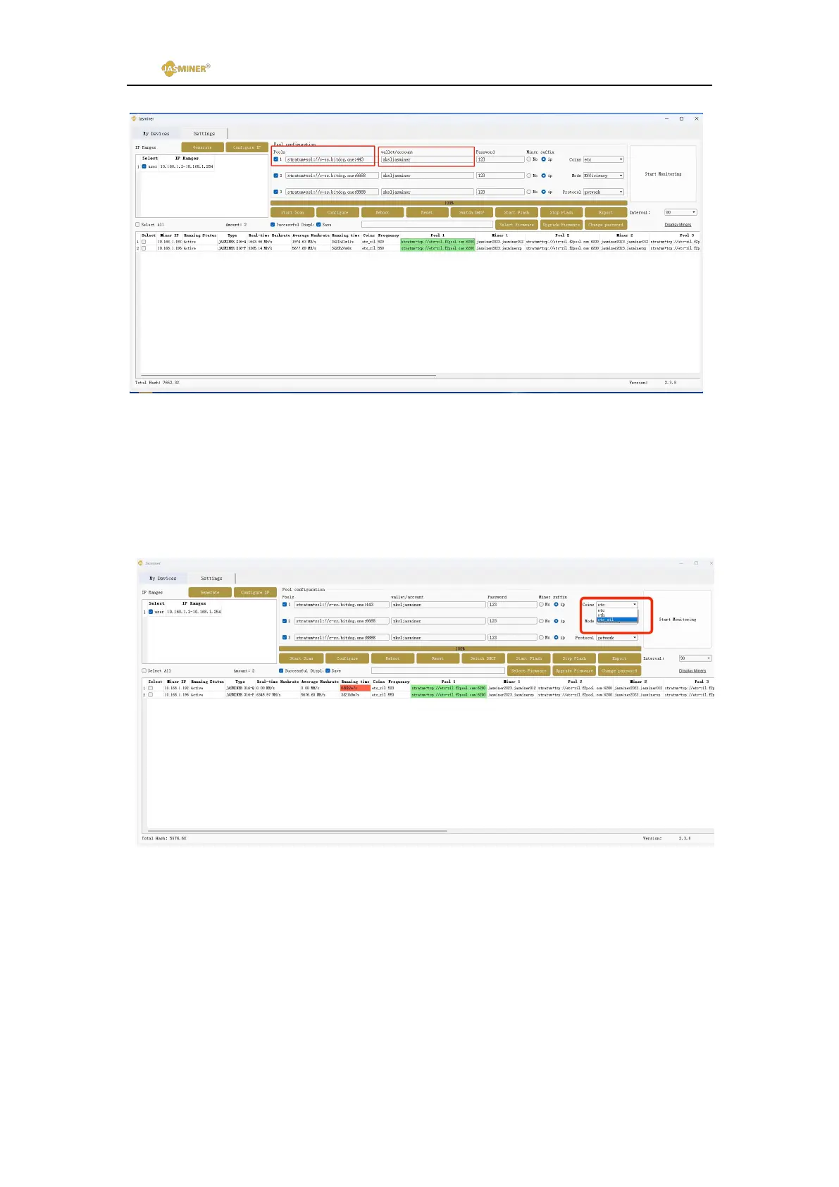 mining (note that previous address and algorithm selection should be the