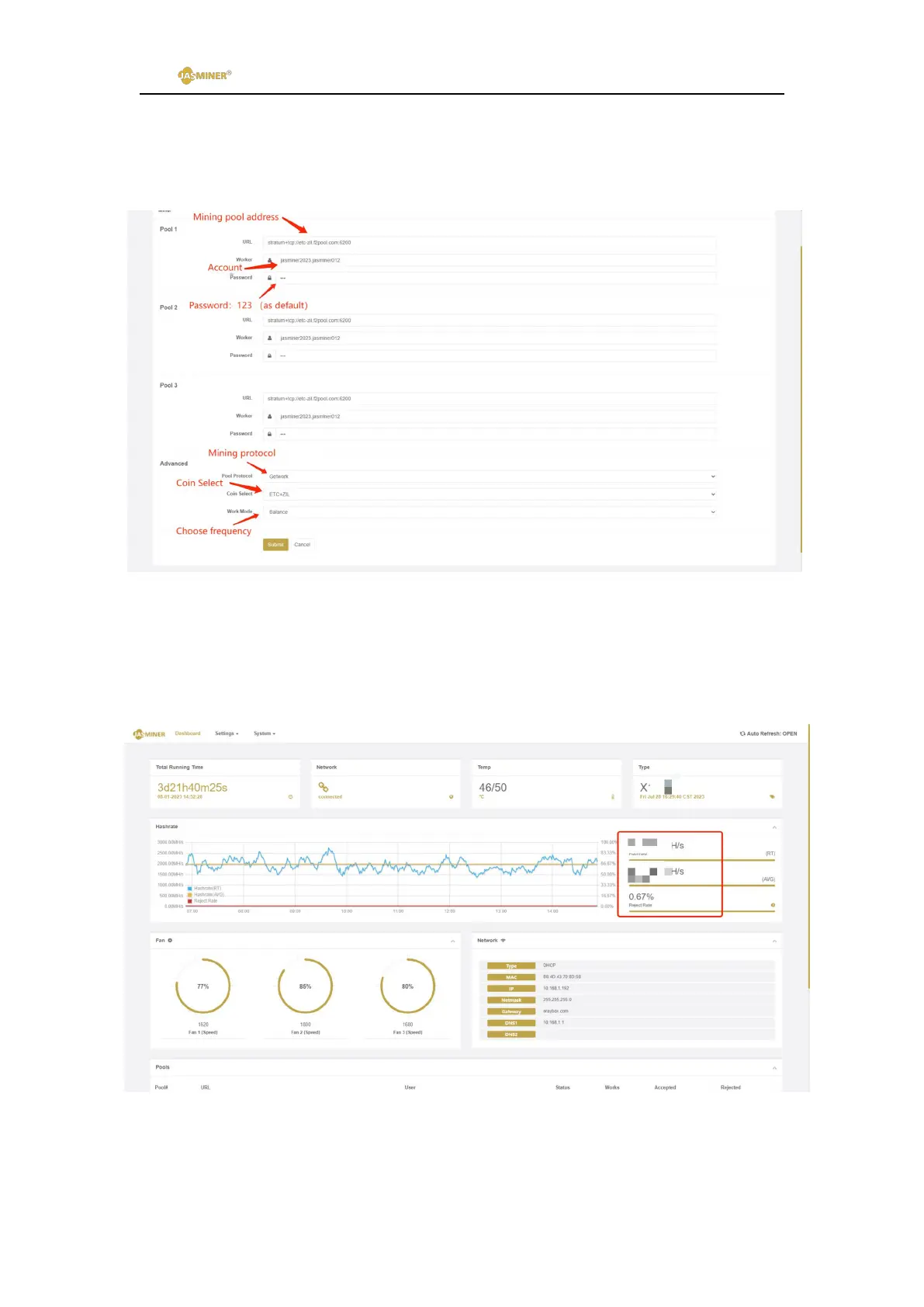 C) After runs about 20 minutes, you can view the corresponding hashrate