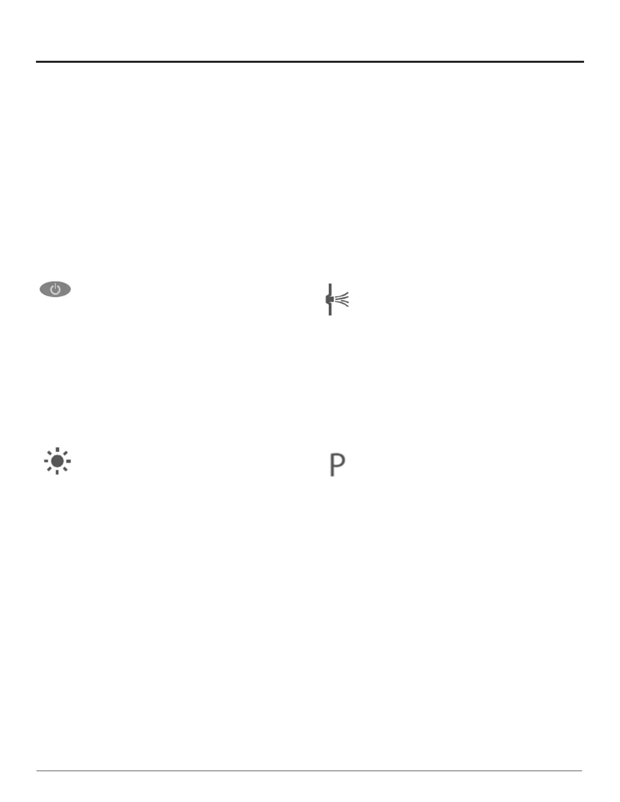 Unless otherwise indicated an ON/OFF function will take place with a single press on the button icon. Some functions may