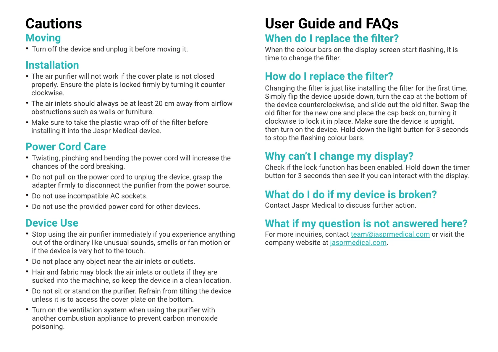 Contact Jaspr Medical to discuss further action.