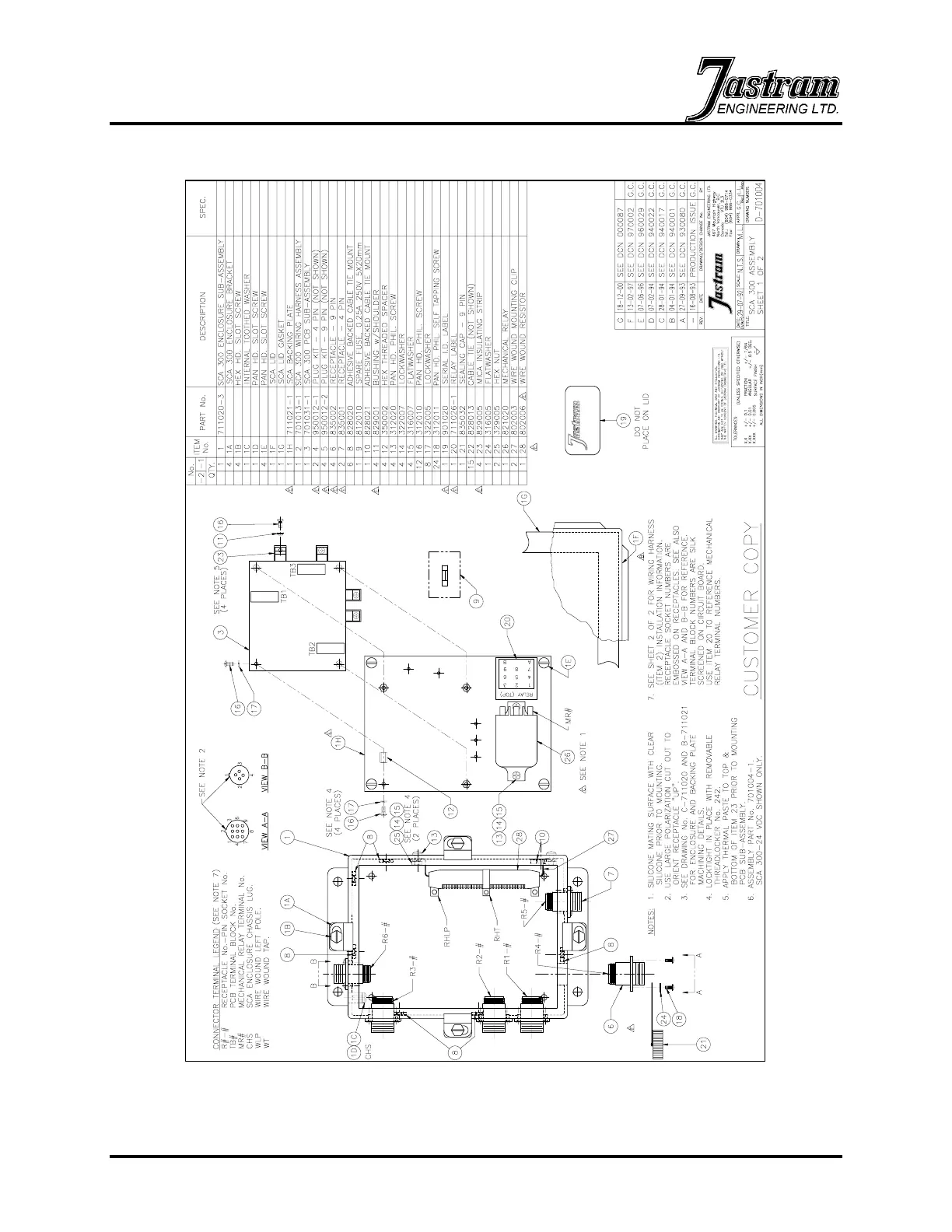 Jastram ENGINEERING SCA 300 - Figure 13 - SCA 300 Assembly and Customer Parts List