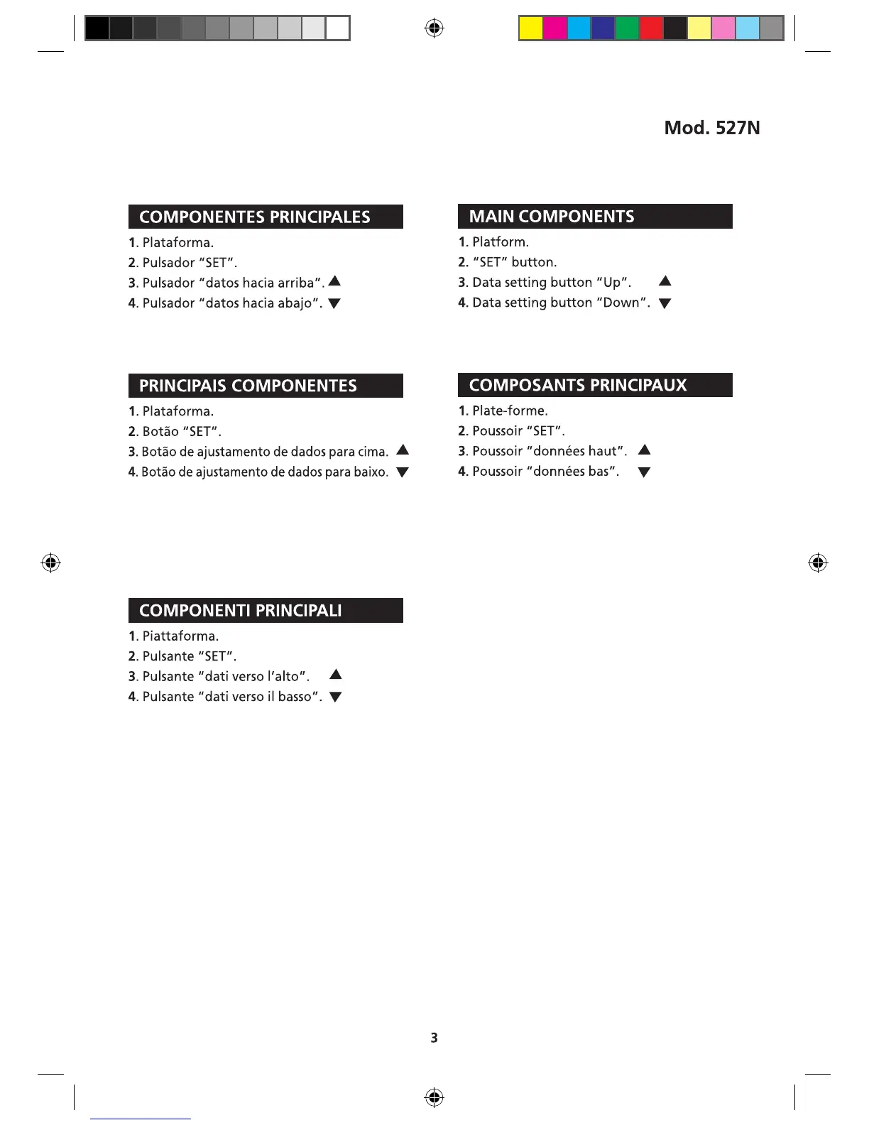 Jata 527N - Main Components; Platform; SET Button; Up;Down Data Setting Buttons