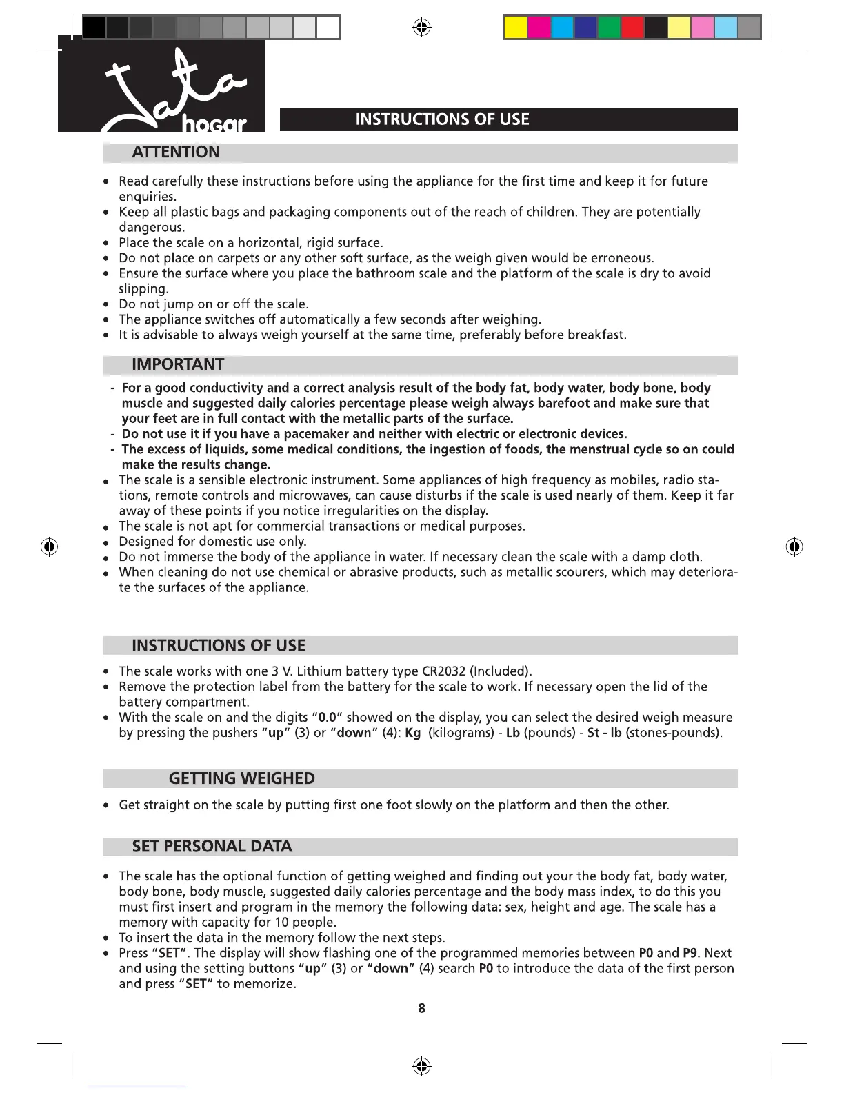 Jata 527N - Instructions of Use; Attention and Important Notes; Basic Operation; Setting Personal Data