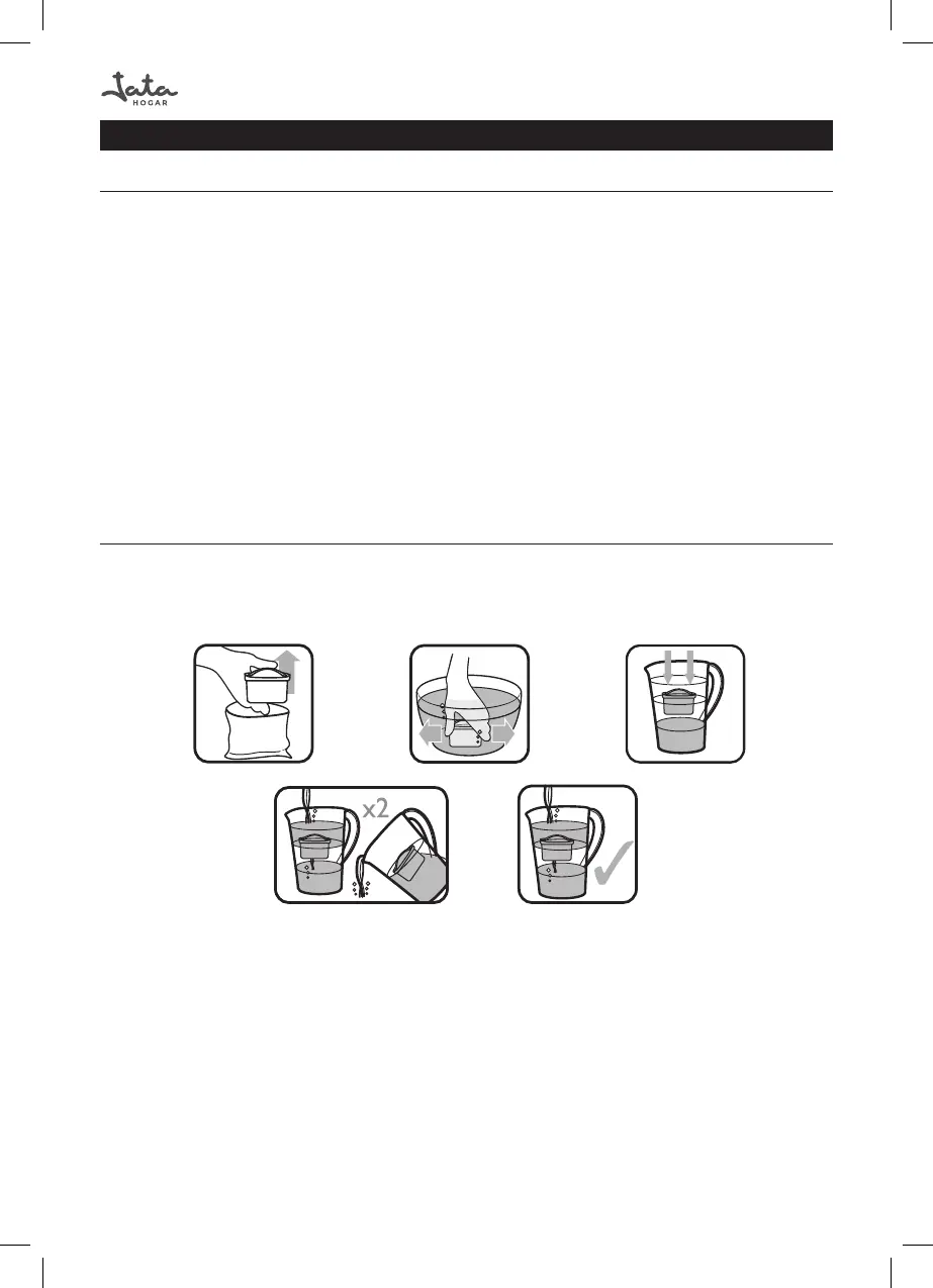 2.Introduzca el ltro en un recipiente con agua durante unos 20 minutos y agítelo de vez en