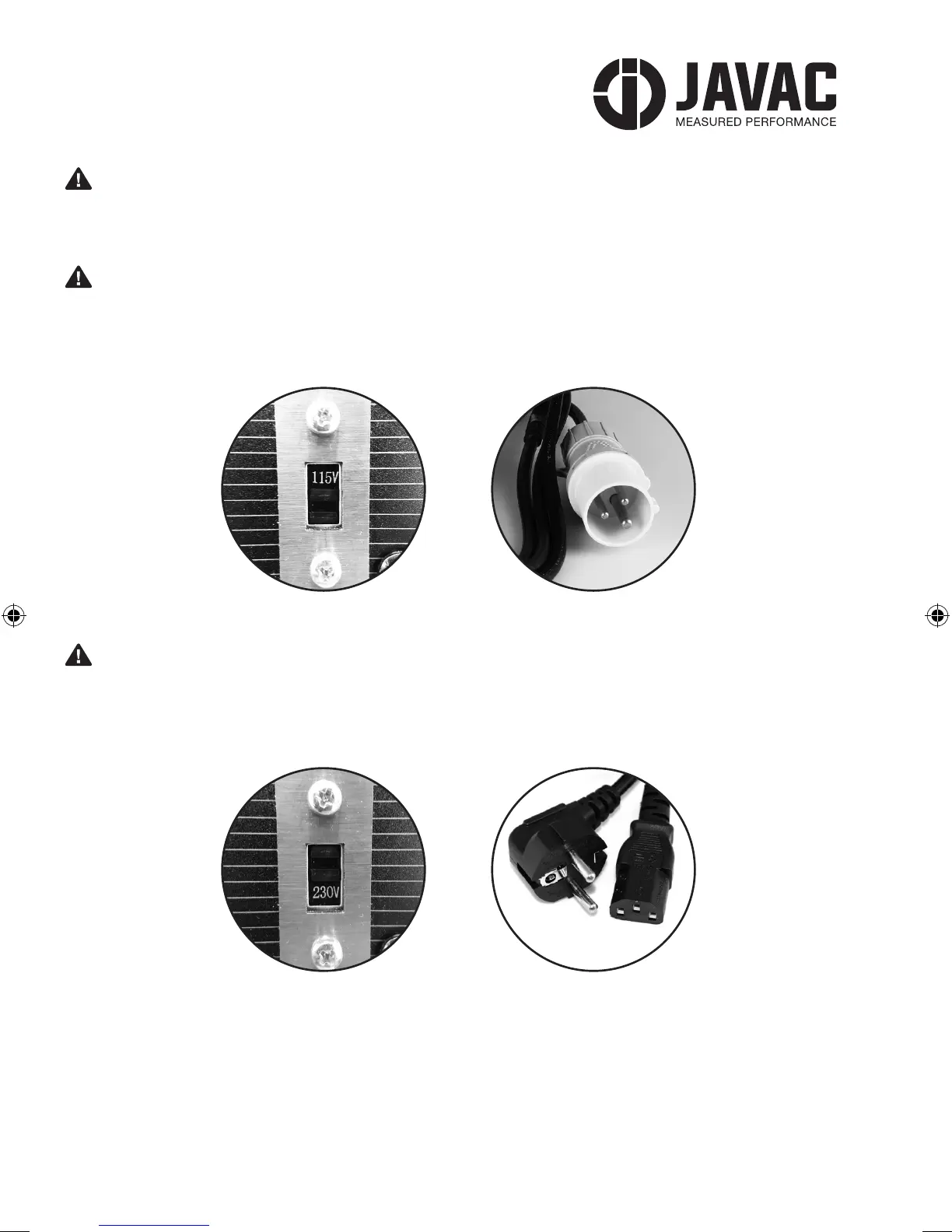 1.5 Bendet sich der Schalter in dieser Position, ist er auf 230 Volt 50/60 Hz eingestellt. Hierfür