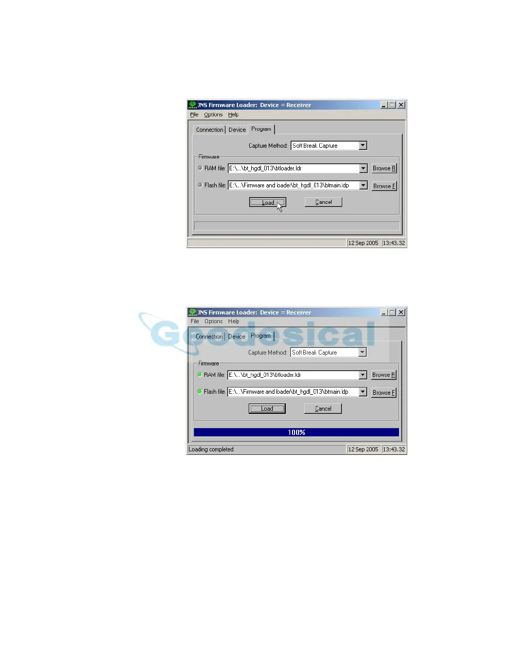 4. Click Load and wait until 100% of the files load into your receiver
