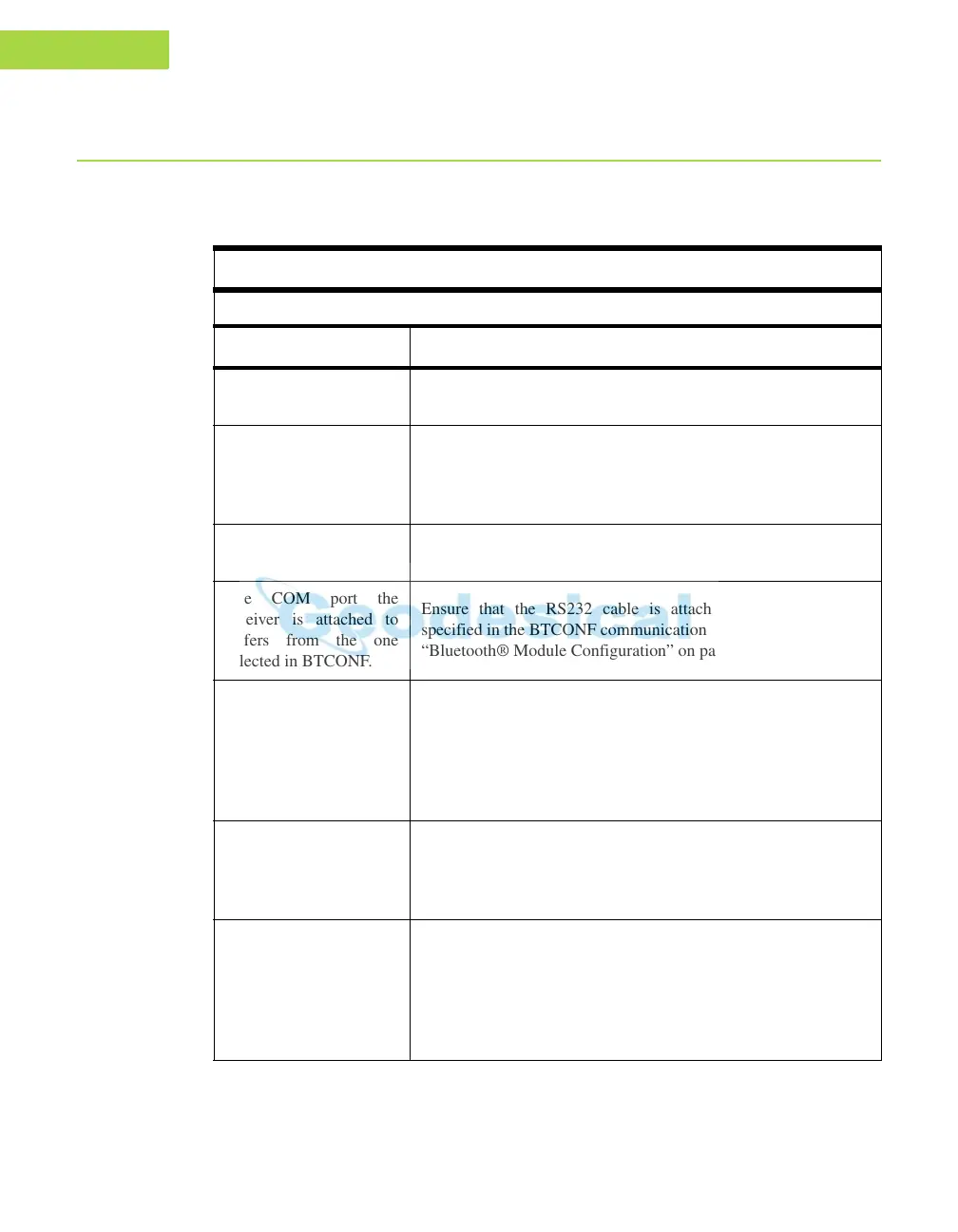BTCONF reports the error messages in the status bar.
