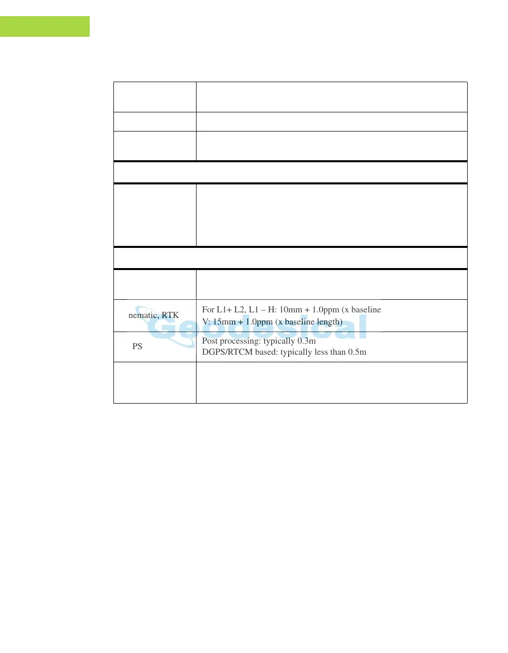 For L1+ L2, L1 – H: 10mm + 1.0ppm (x baseline length);