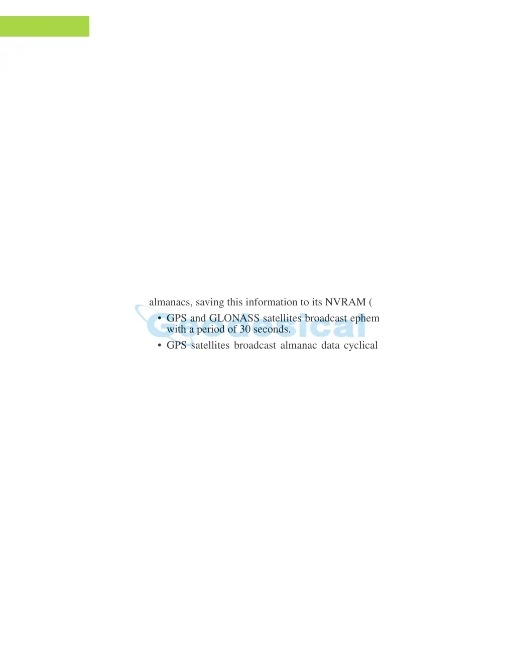 almanac, and so on) satellites broadcast. To calculate a position,