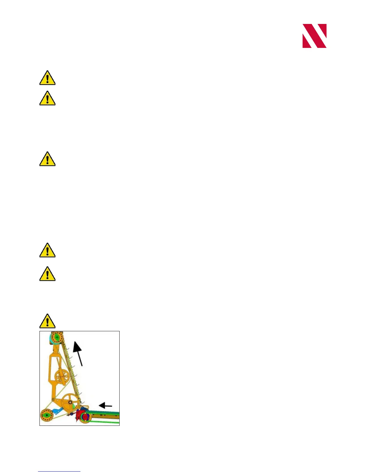 Check the elevator's direction of rotation before starting work with the machine.