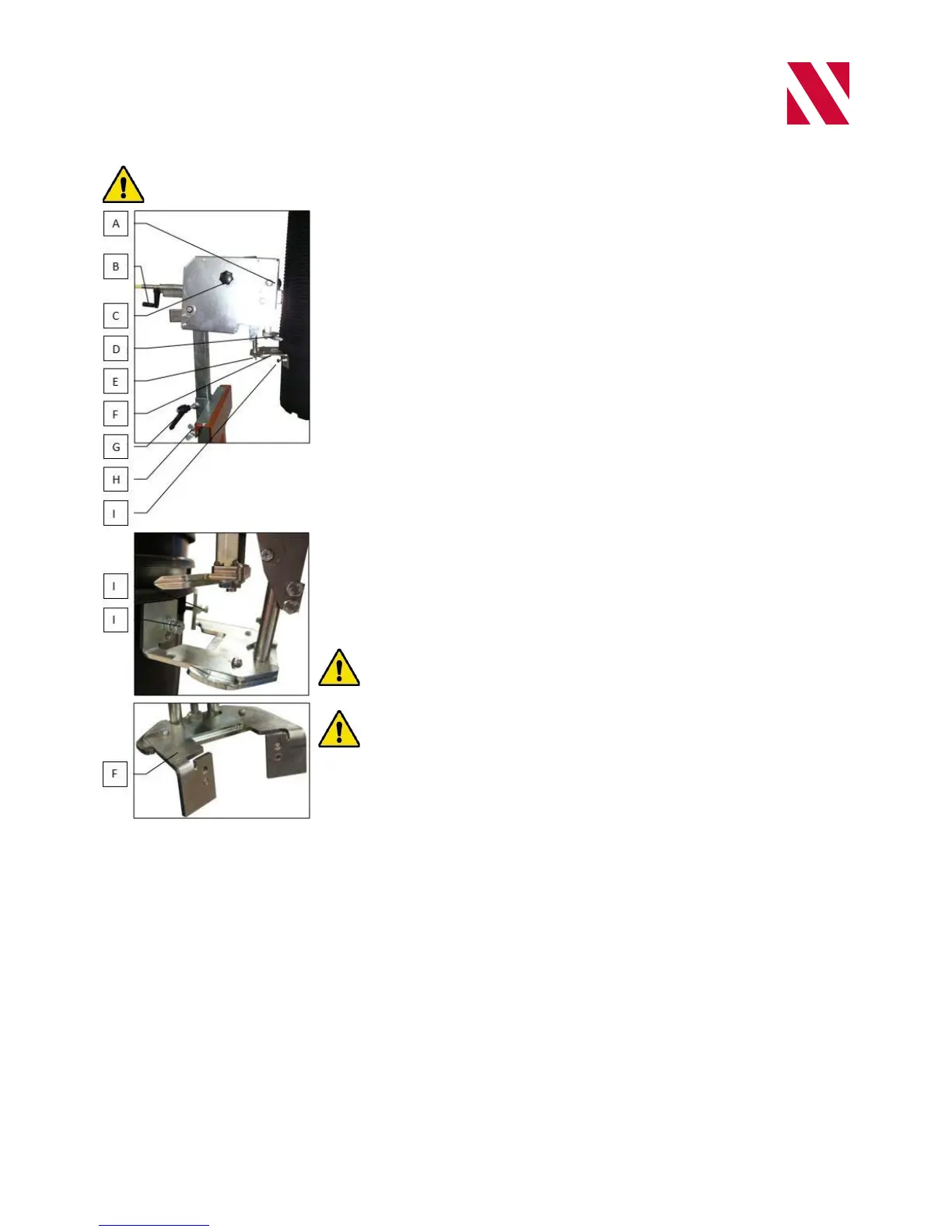 8. Adjust the height of pot holder (F) with screw (E) so that the pot row is at