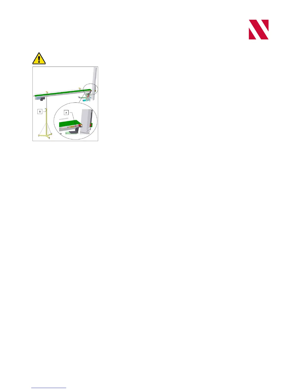 3. Adjust the height of leg (B) so that the belt is horizontal.