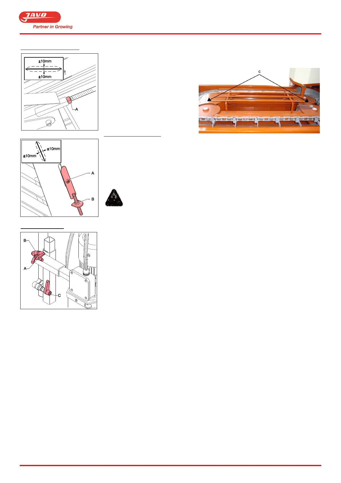 The pot track chain tension is correct when it can move ± 20 mm transversely in the