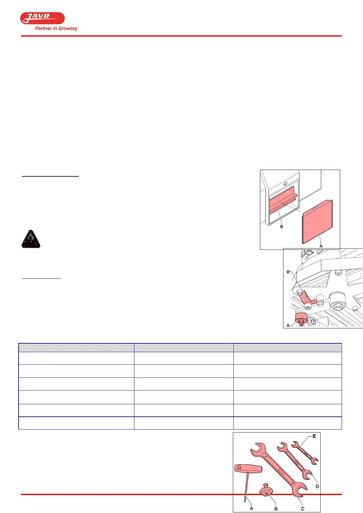 Check the tension of the chains and belts is still correct daily. (For specifications see pages 8 and 9).
