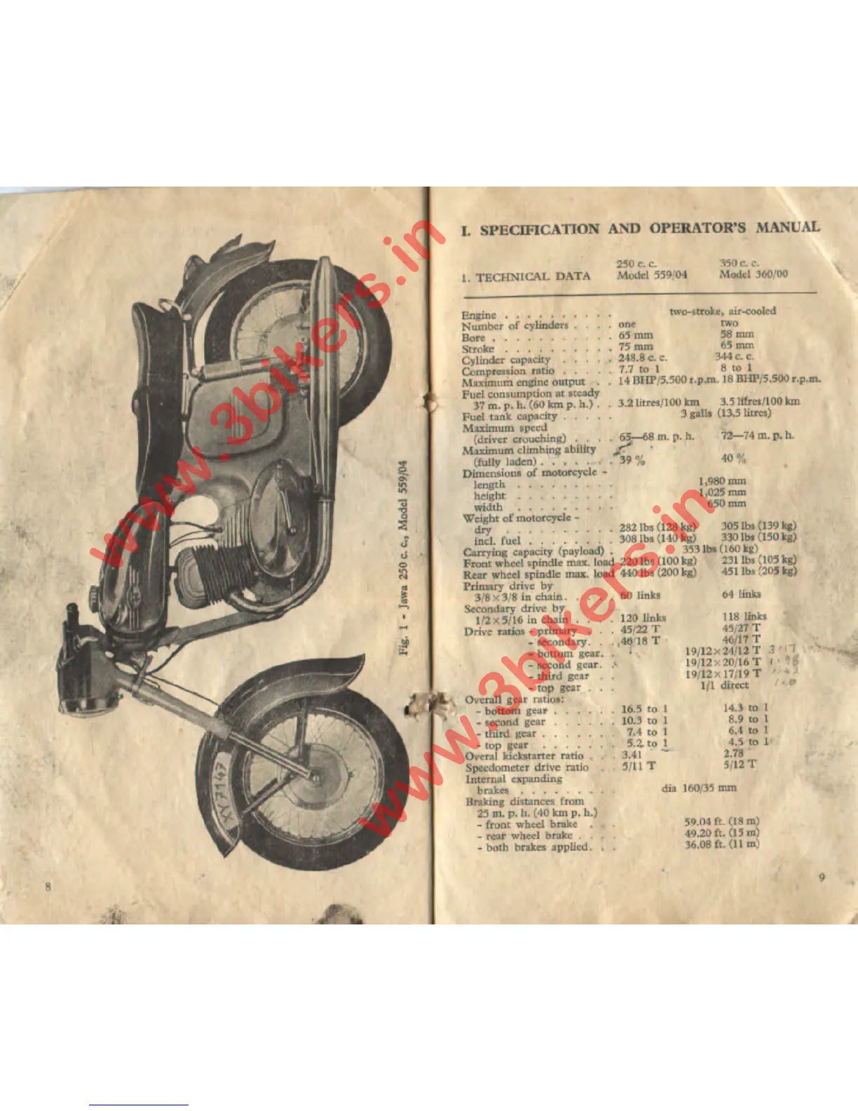JAWA 360/00 - I. SPECIFICATION AND OPERATORS MANUAL; TECHNICAL DATA