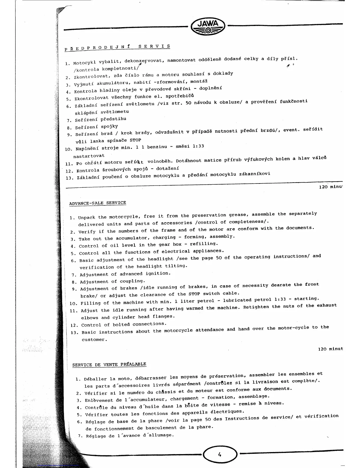 JAWA 638 - Service Procedures; Advance-Sale Service; Accumulator Preparation
