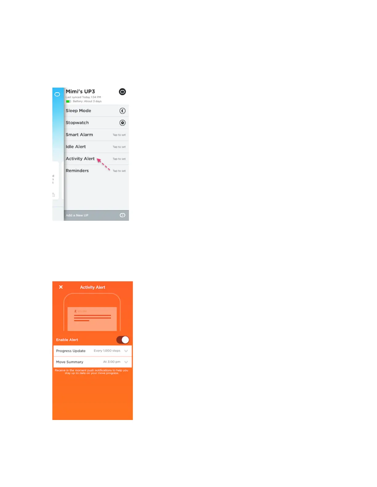 progreso". Para recibir un resumen de movimiento a la misma hora todos los días, pulsa