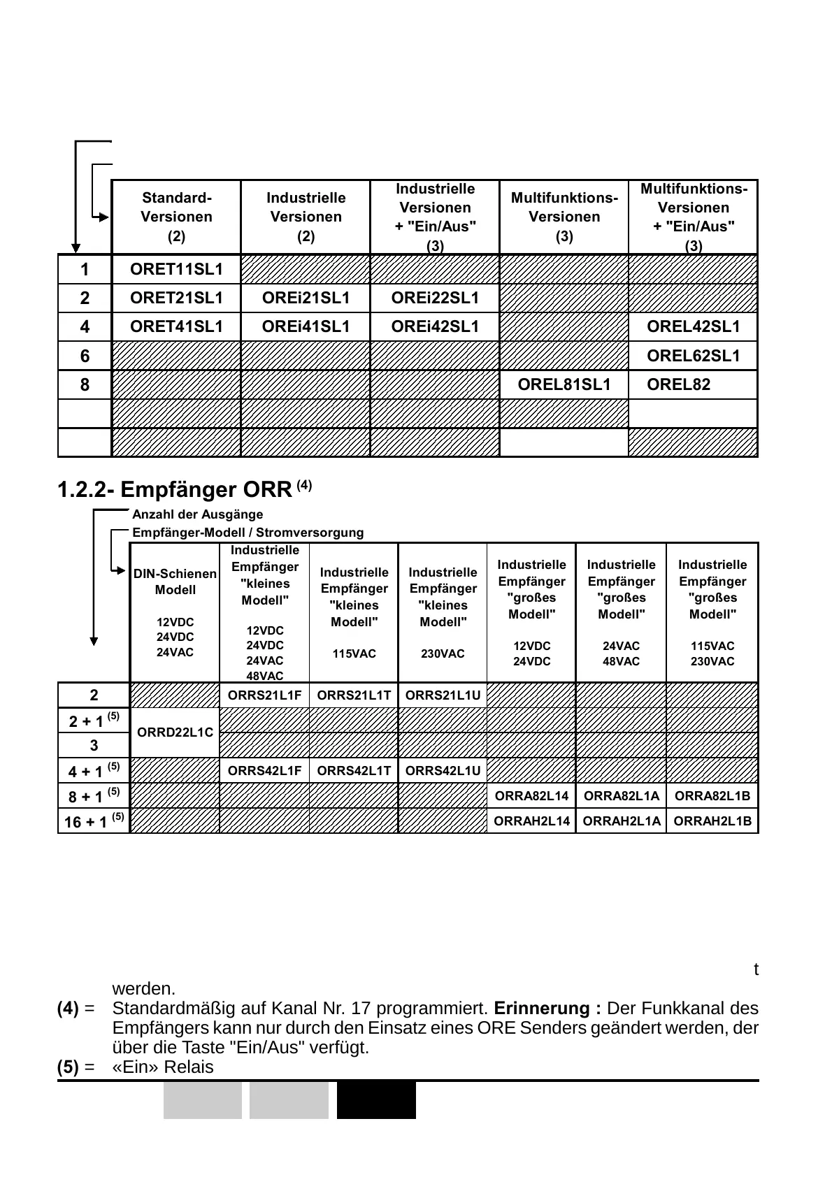 Empfängers kann nur durch den Einsatz eines ORE Senders geändert werden, der