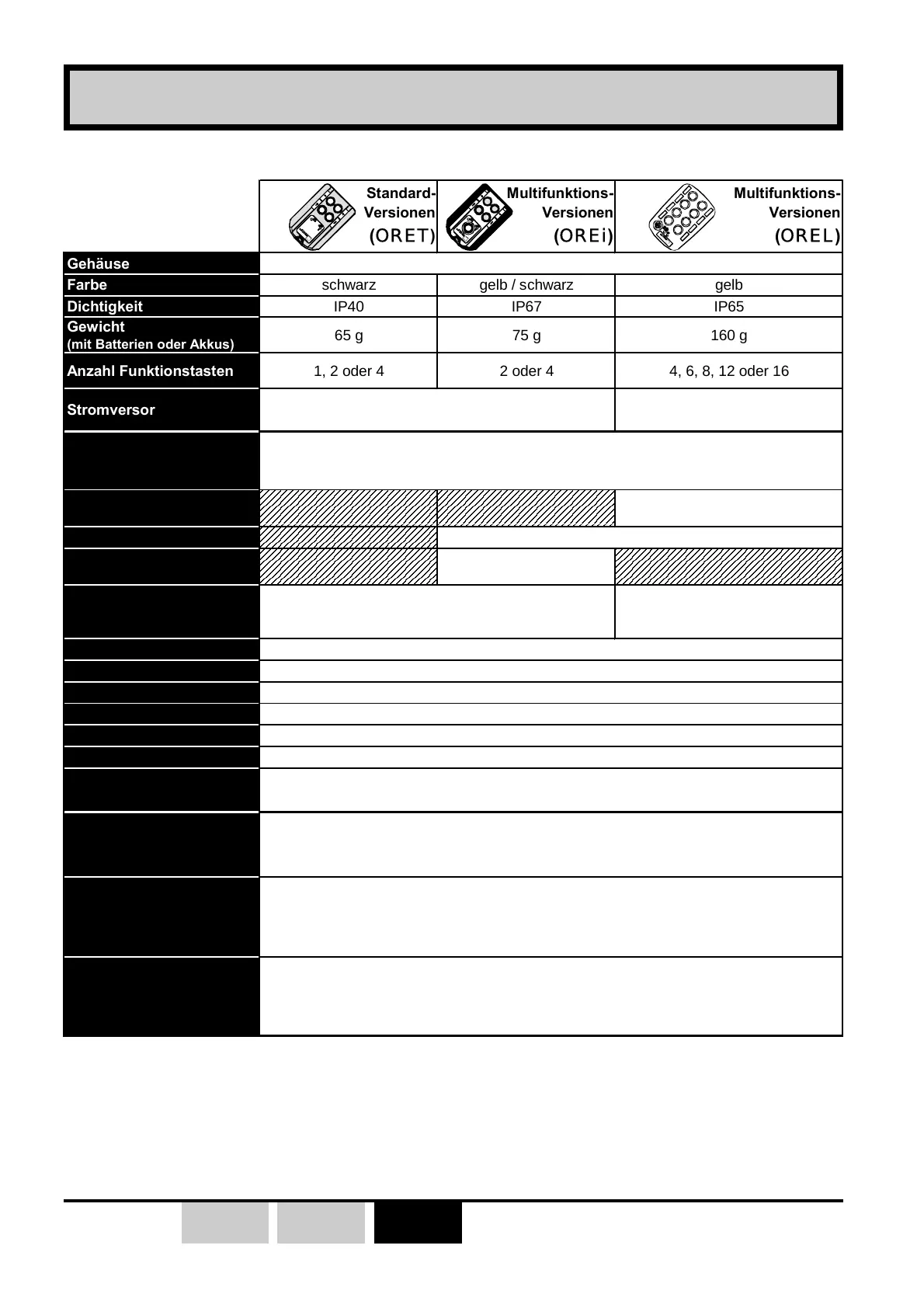 Anzahl Funktionstasten 1, 2 oder 4 2 oder 4 4, 6, 8, 12 oder 16
