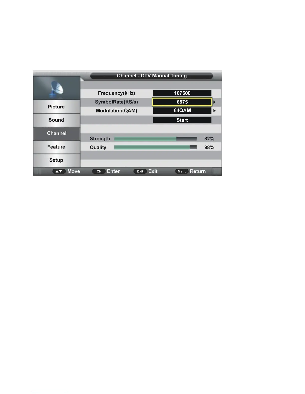 - Press OK or RIGHT navigation button to enter submenu and press UP/DOWN