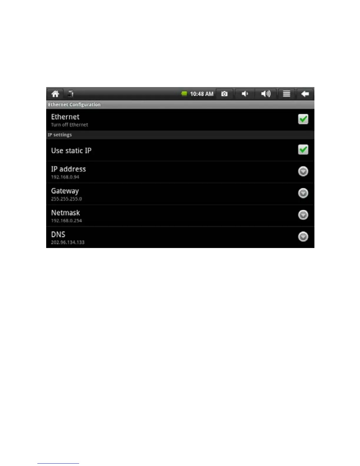 2. Select static IP and input IP address, Gateway, Netmask and DNS