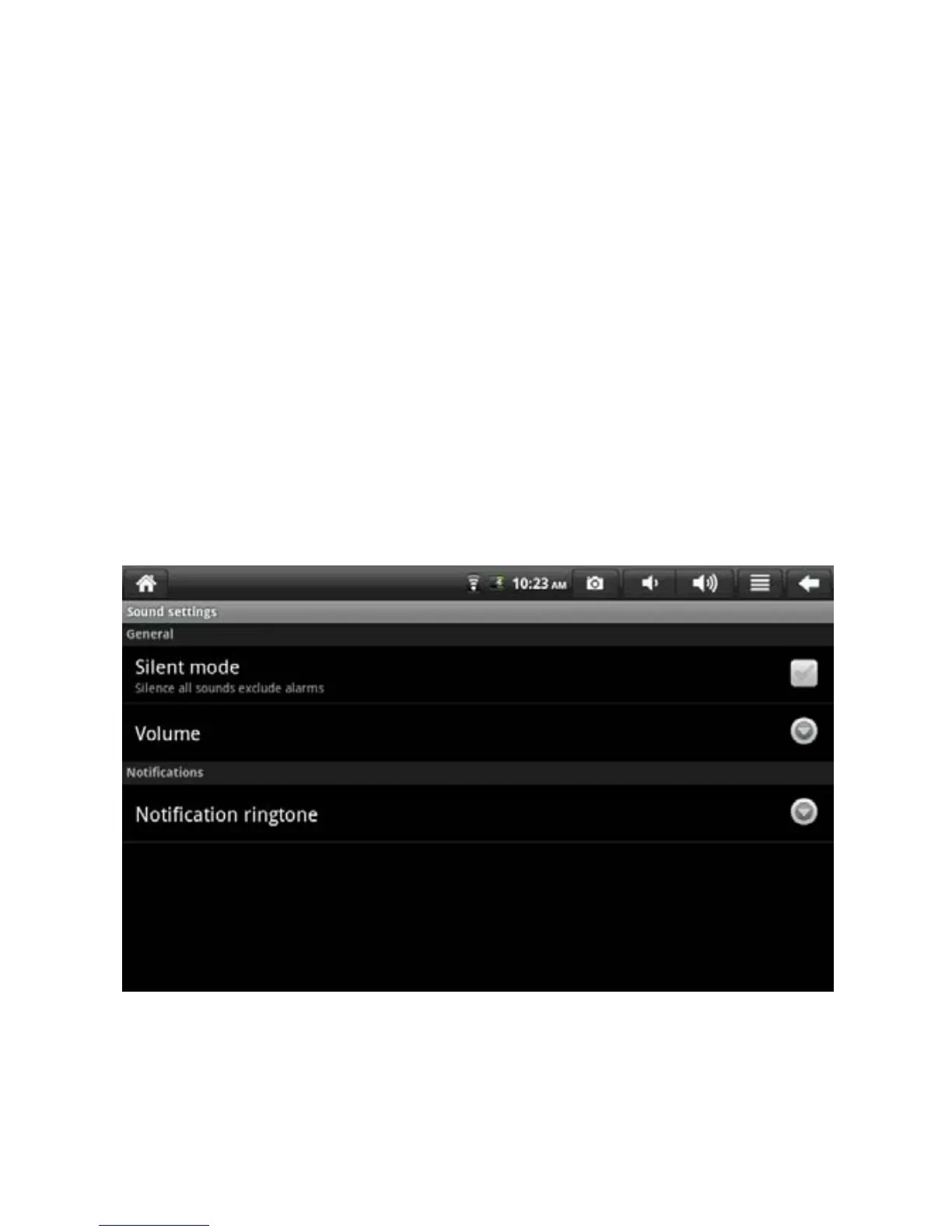 Set the audio, notification and screen brightness.