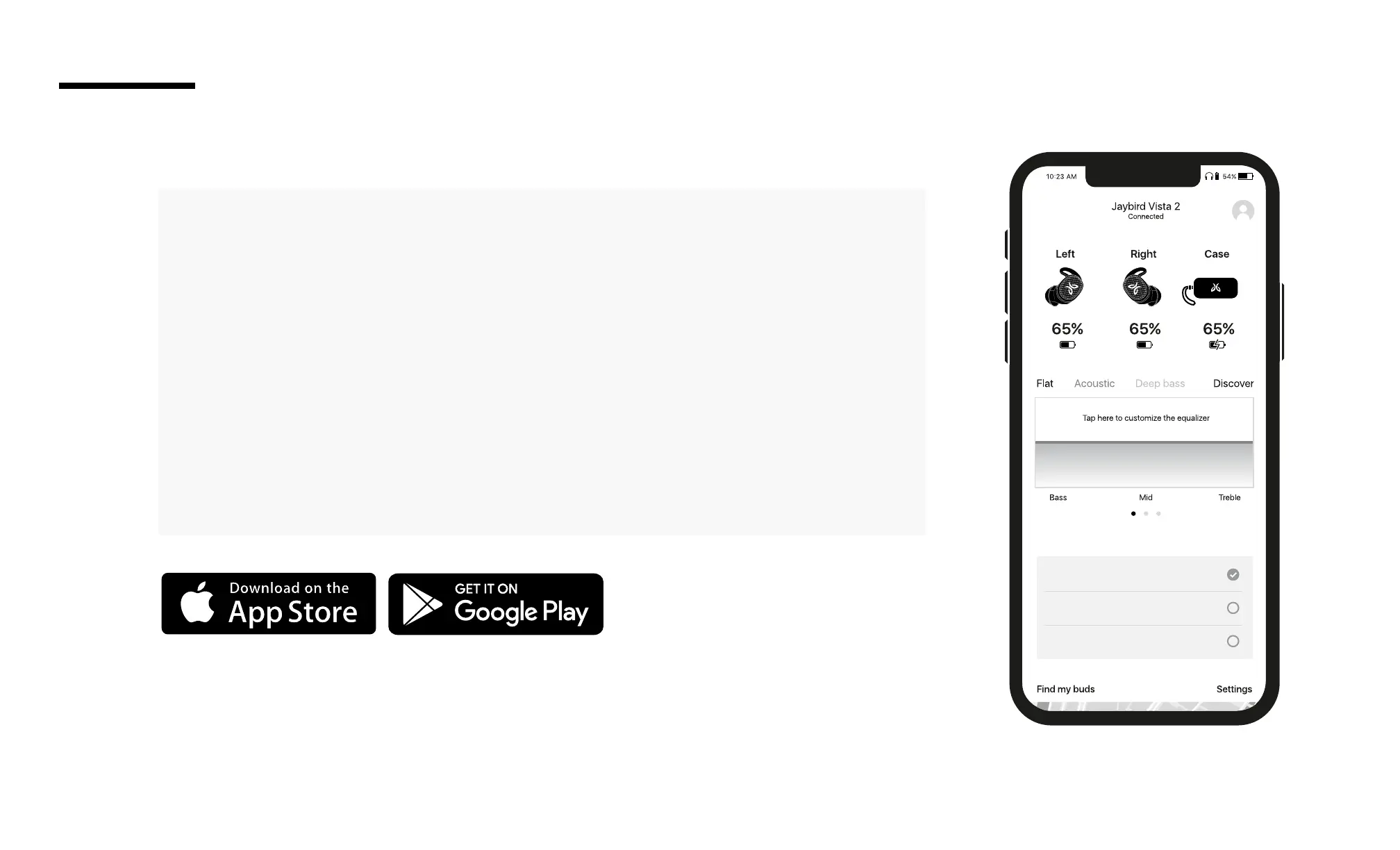 • Customize the sound prole of your Vista 2 earbuds.