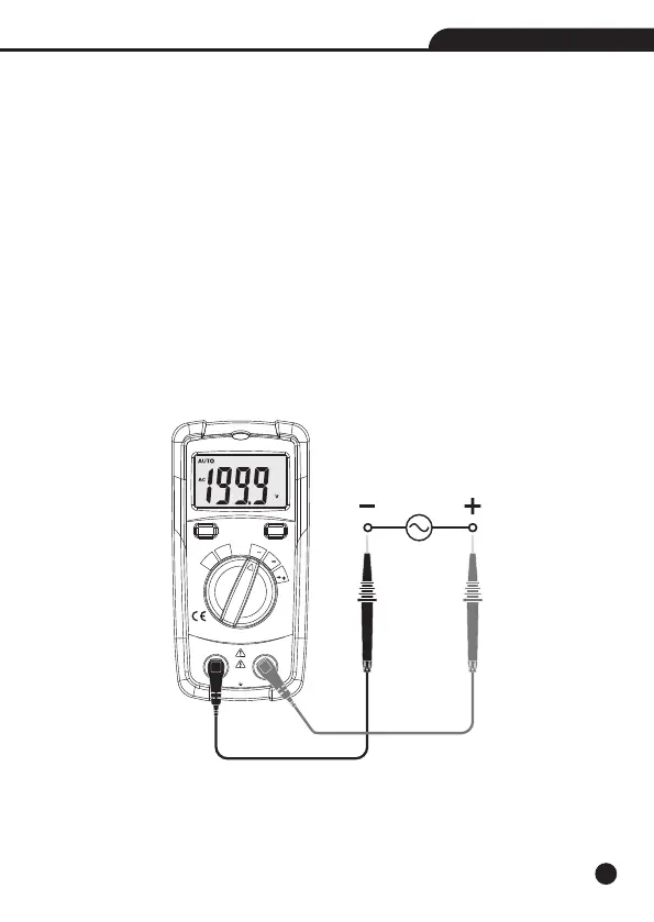 3.Touch the test probe tips to the circuit under test, be sure to observe the correct polarity (Red lead