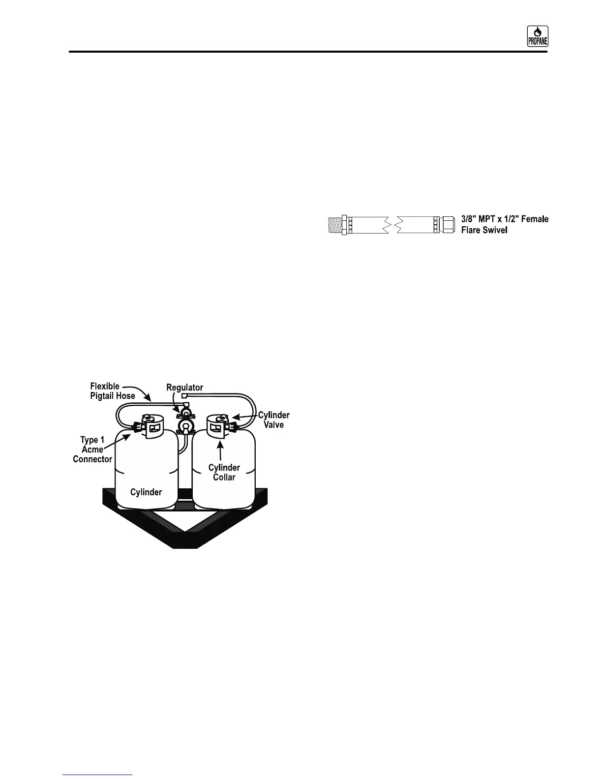 pigtail hose to the regulator inlet and the