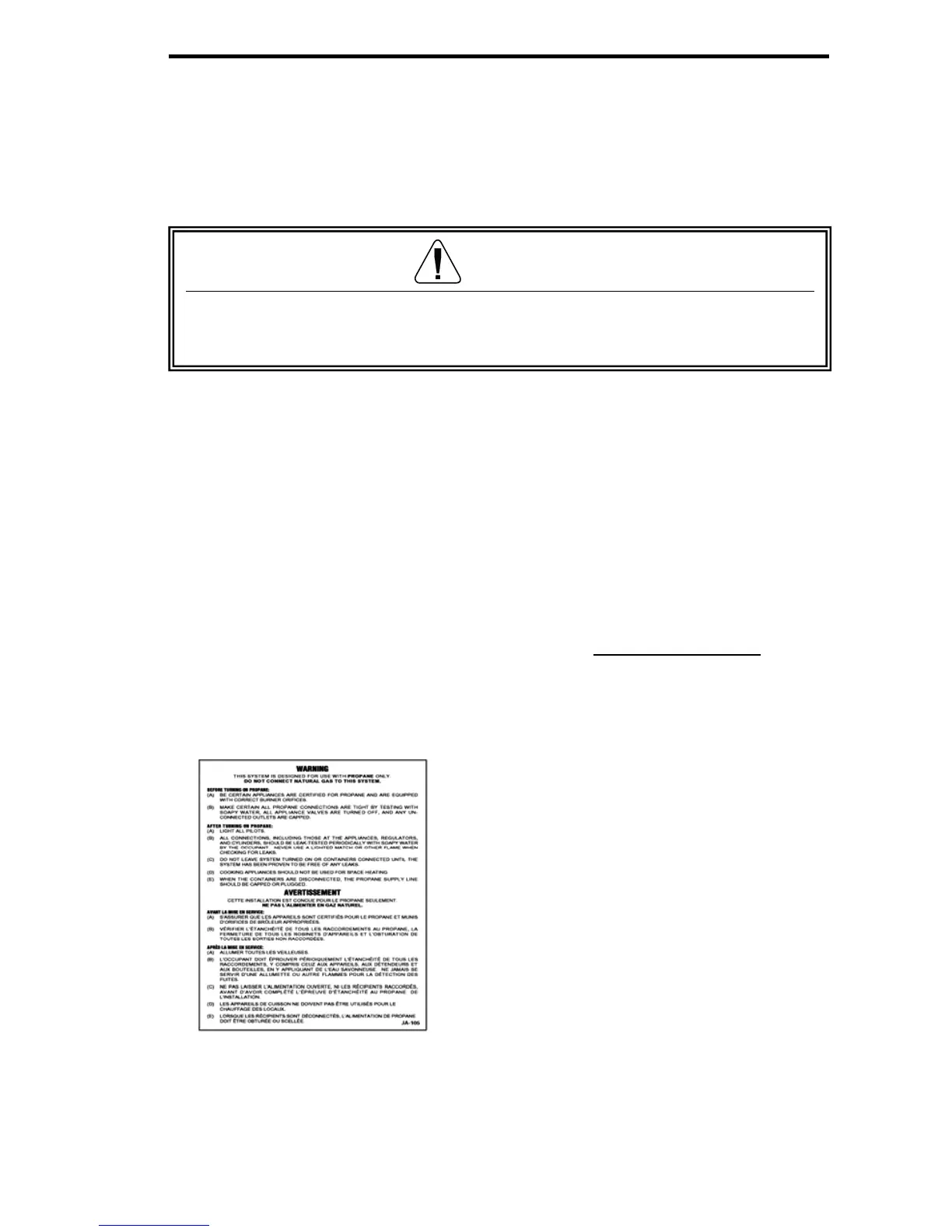 propane system or filling the propane cylinder. When the cylinder is disconnected