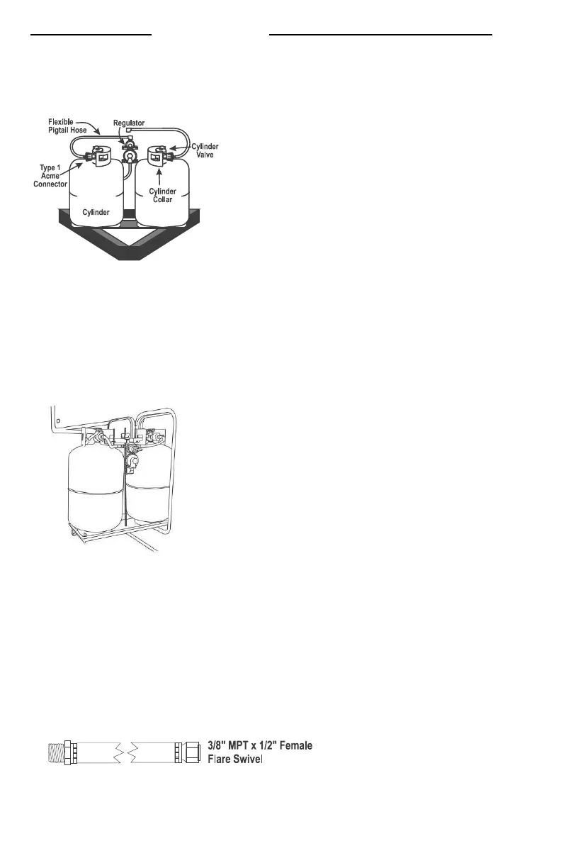 4. Attach the 1/4” inverted flare x 18” Type-1 pigtail hose to the regulator inlet and the