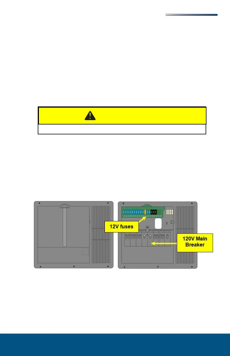The Load Center contains 12VDC fuses and 120VAC circuit breakers for almost all of the