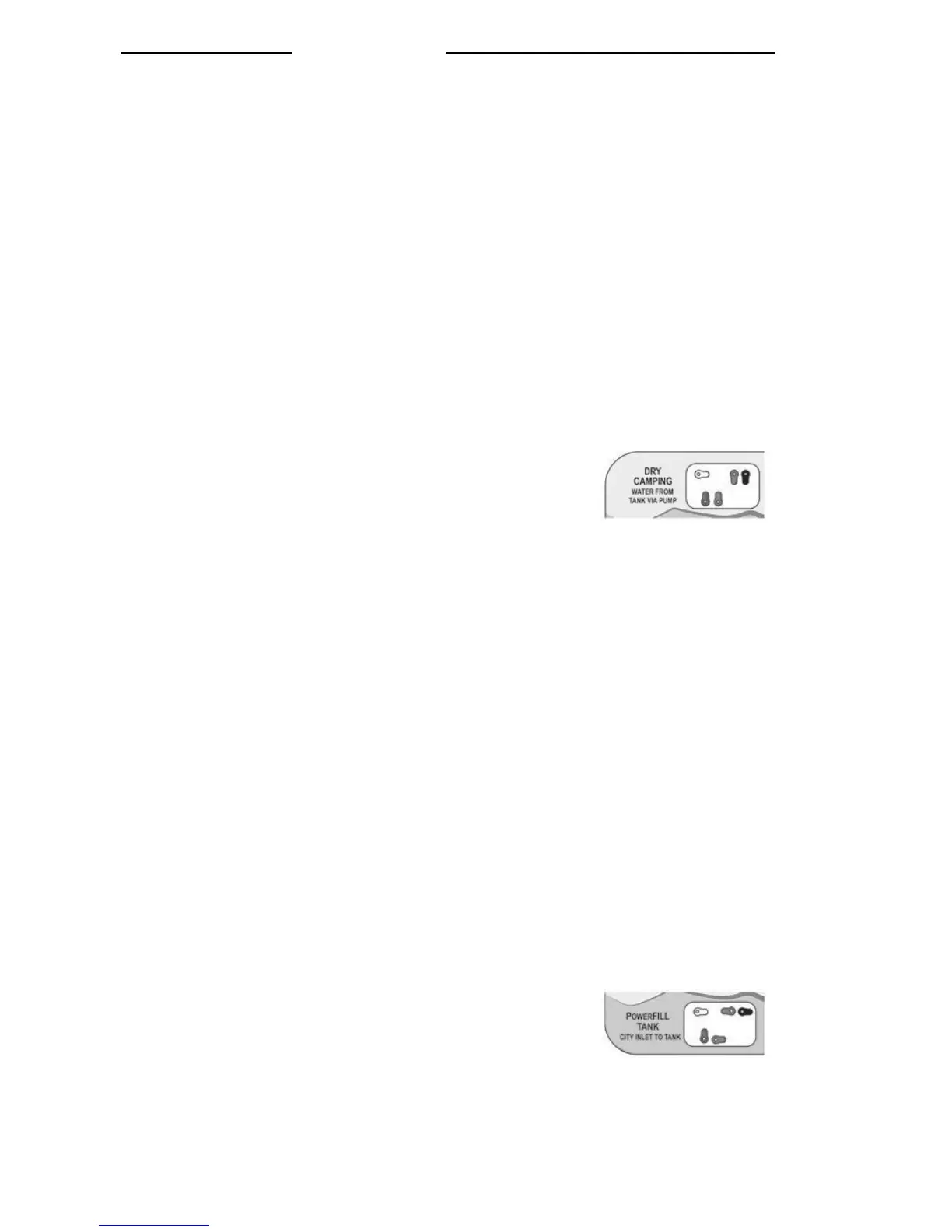 Set valves to the DRY CAMPING setting. Turn the