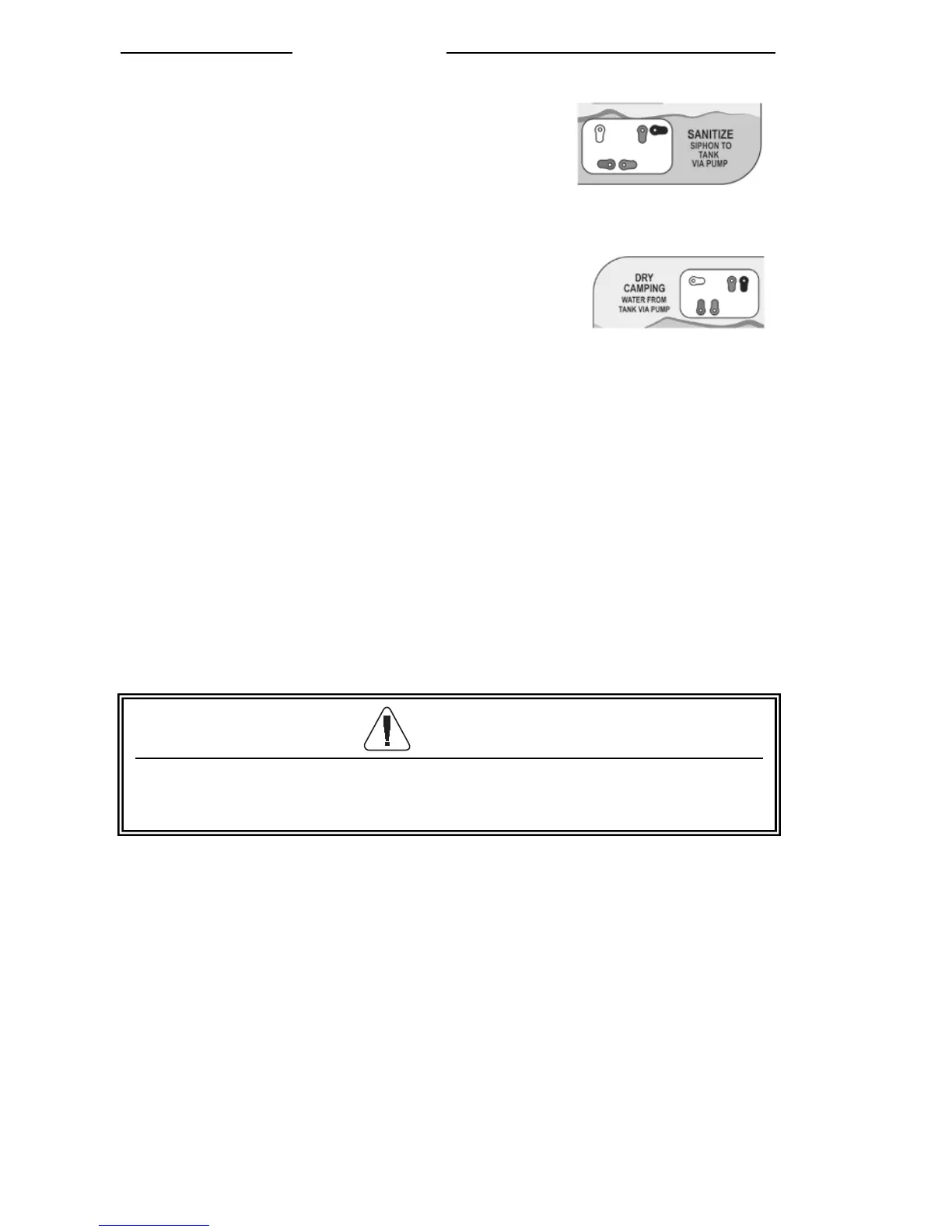 13. After filling the water tank, set the valves to either DRY CAMPING or CITY