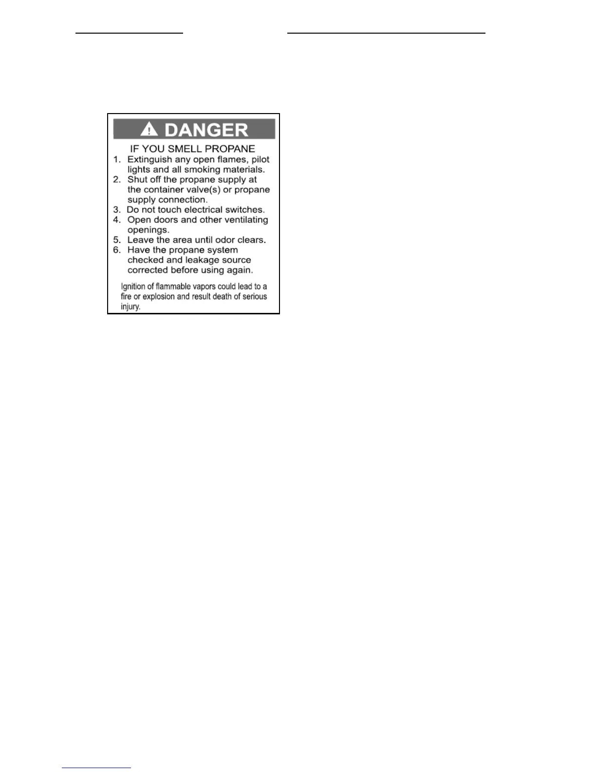 and have the propane system inspected by your dealer or qualified propane service