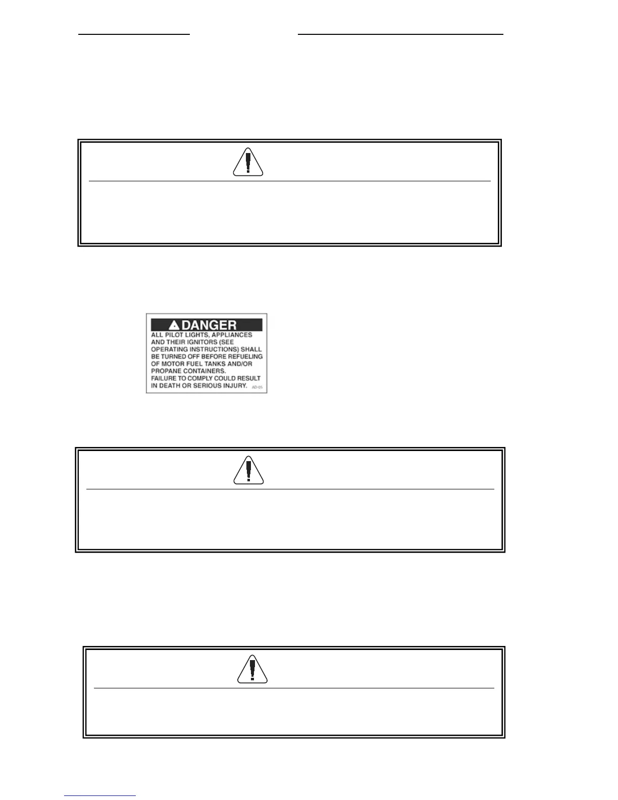 extinguished. Shut off gas to all appliances by closing the propane gas main shut off