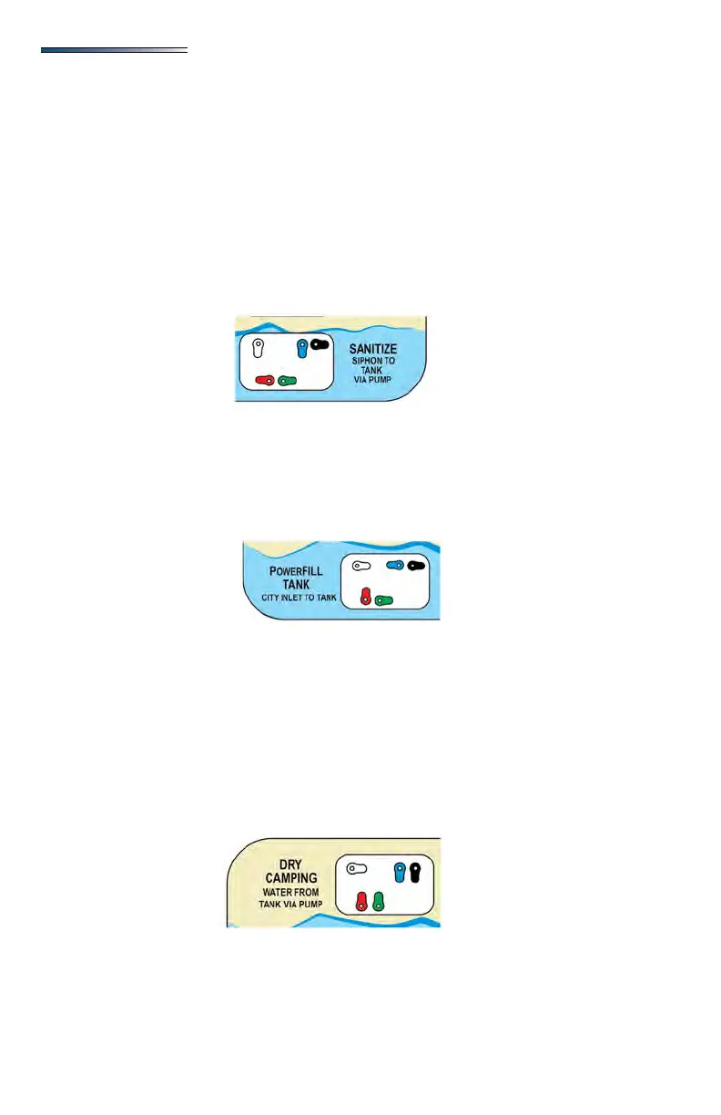 Set the valves to the DRY CAMPING setting. Turn the pump ON to send water