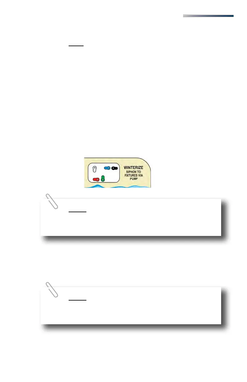Antifreeze will be drawn into the water lines and xtures (pump only runs when a