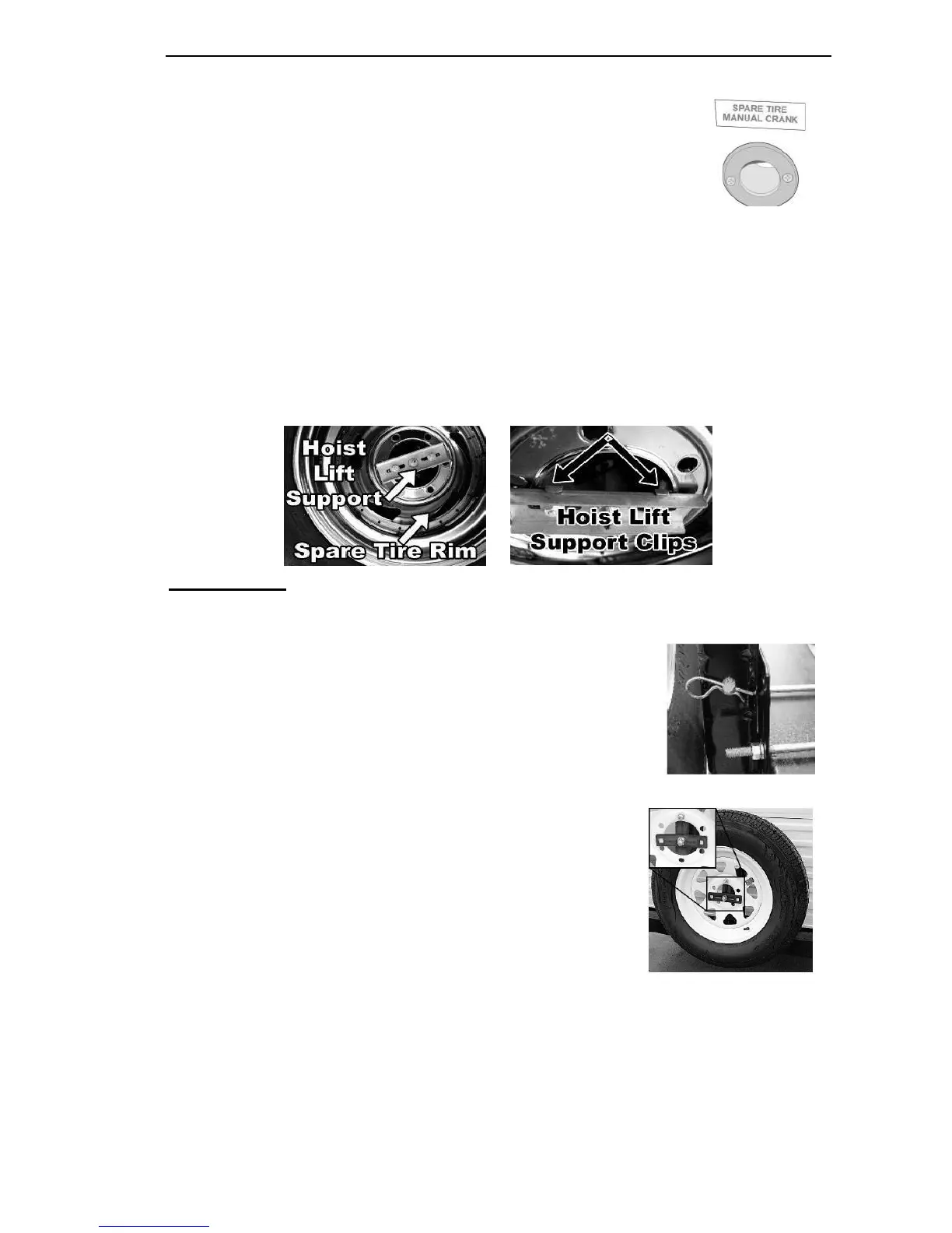 To secure the spare tire in the travel position, put the steel hoist lift support located on the