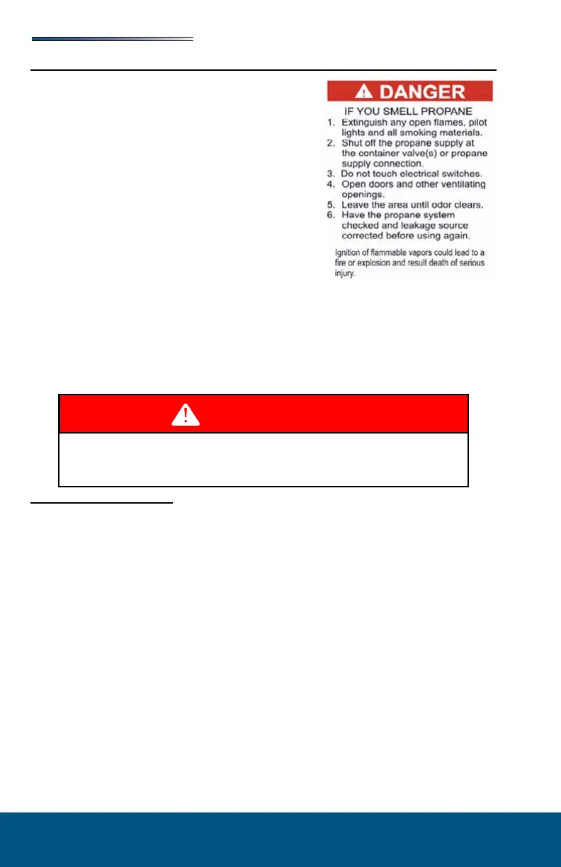 “bubble” at the leak point. If a leak is indicated, shut o the propane system valve(s) and