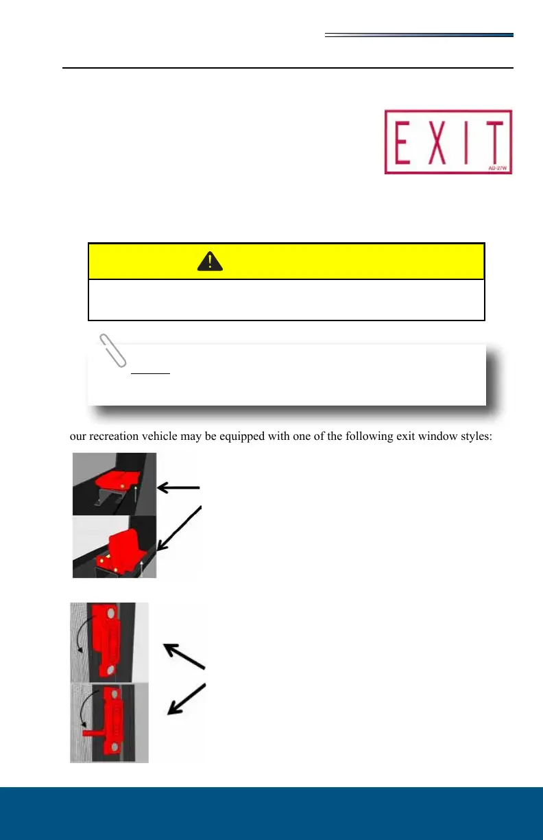 Your recreation vehicle may be equipped with one of the following exit window styles: